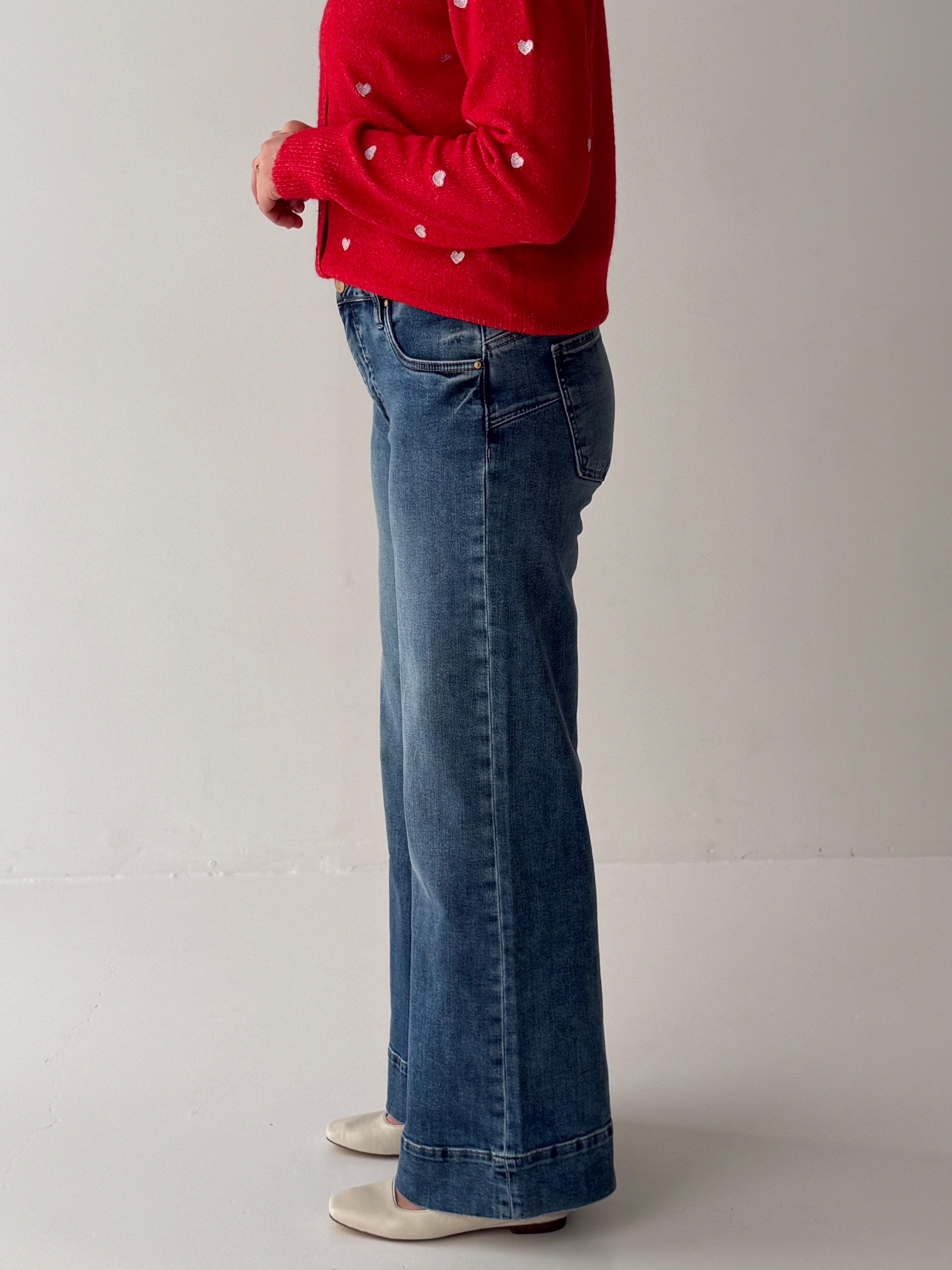Elevated ankle flare silhouette with a flattering high-rise fit and generous wide hem. Crafted by Kut from the Kloth in a versatile cool wash that pairs effortlessly with your everyday wardrobe. The Kelsey style delivers a polished, fashion-forward look that works from desk to dinner.