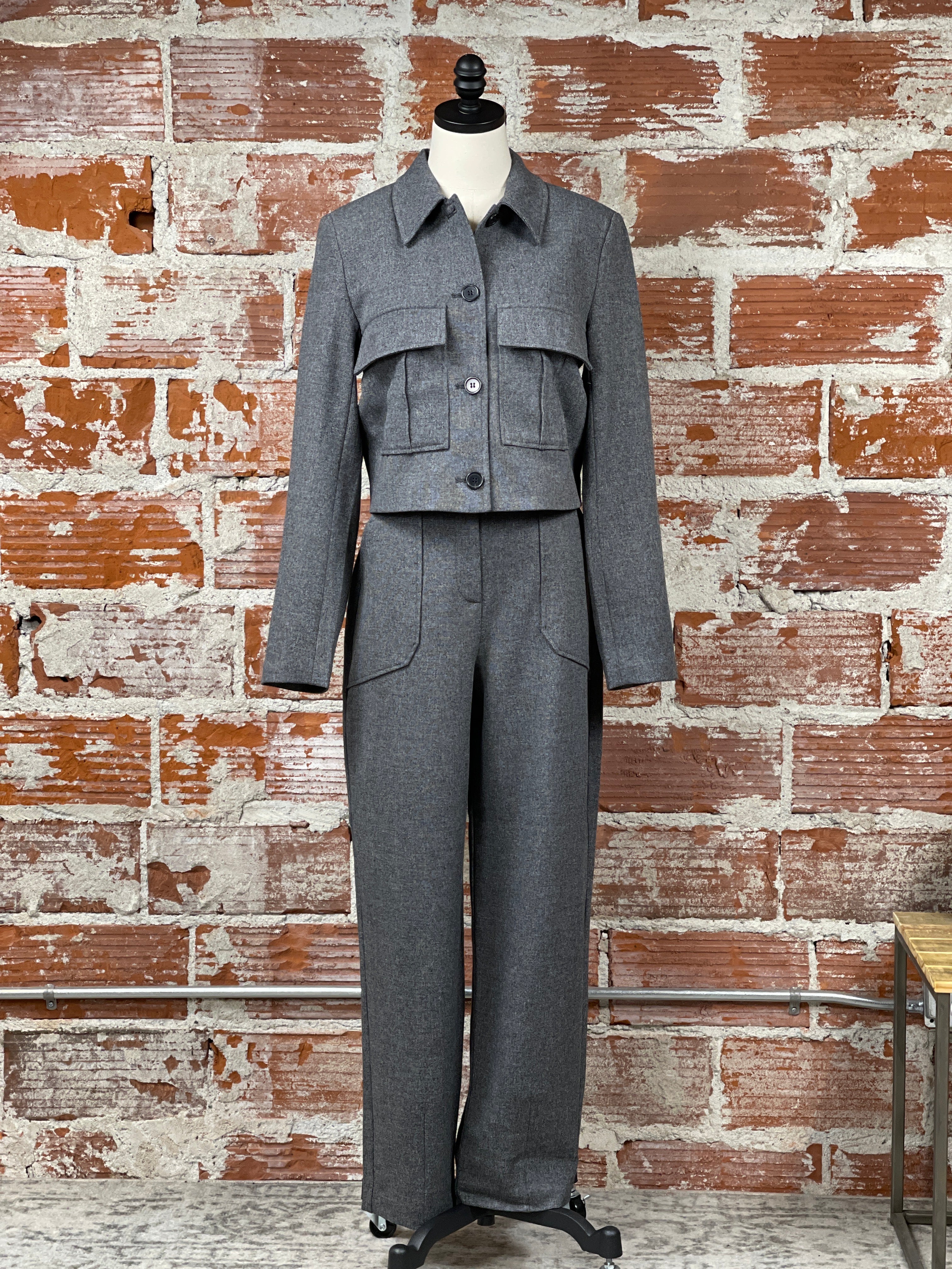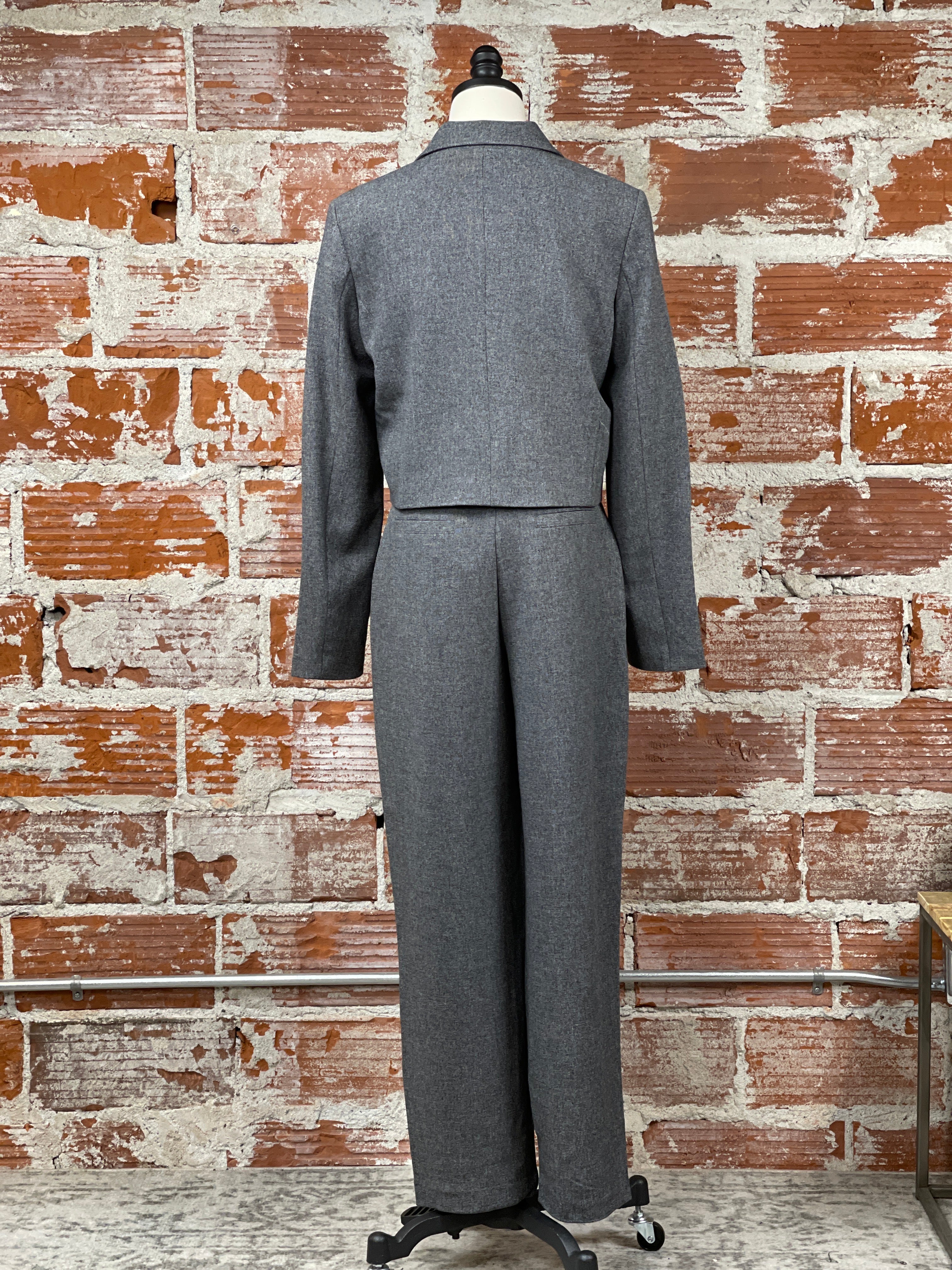 Give your wardrobe an upgrade with the Etona Blazer in Grey Milange. This stylish blazer features a crop length, folded over collar, and two front pockets with flap closure. The versatile grey milange color pairs perfectly with black pants for a dressy outfit or with jeans and a light sweater for a more casual look. For a complete ensemble, pair it with our Etona Pants in Milange Grey (pictured).