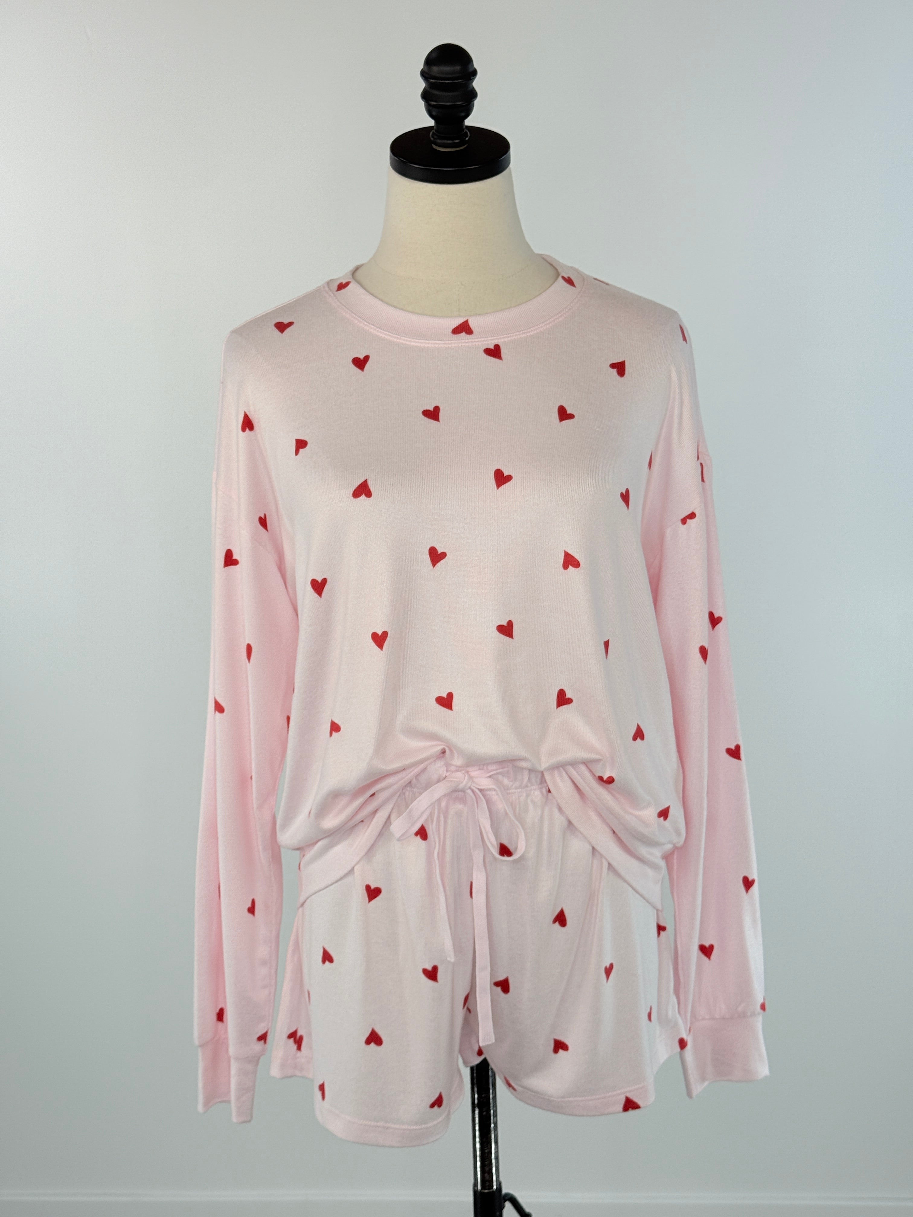 Get ready to lounge in style with Z Supply Love First Shorts. These cozy knit shorts feature a sprinkling of hearts throughout that is so cheerful. The elastic waistband with adjustable drawstring ensures a comfortable fit, and with a 2.25" inseam and classic fit, these shorts are perfect for lounging. Pair with the Z Supply Mira Heart Top or the Z Supply Speak to My Heart Tank (pictured).