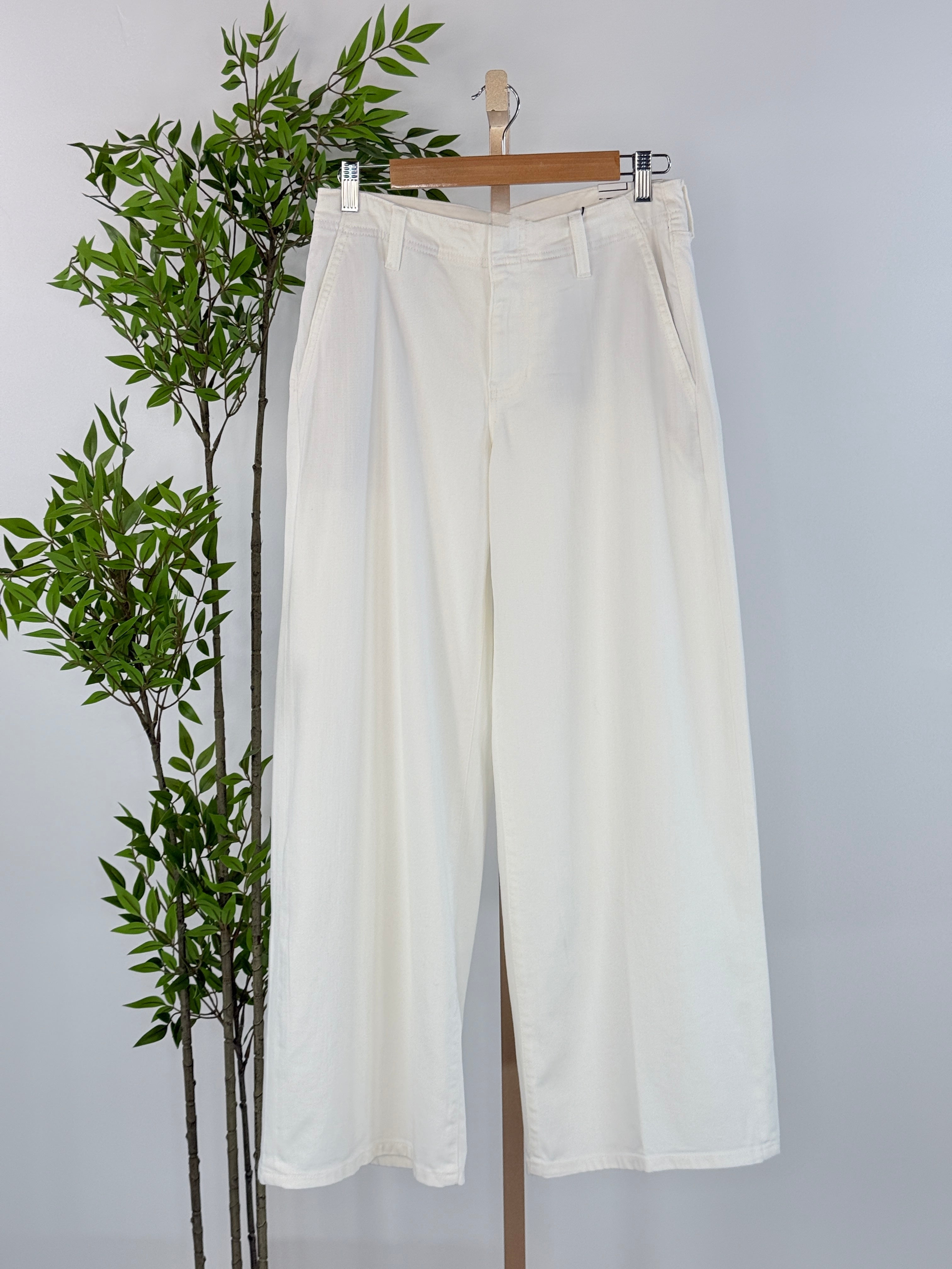 Effortless style meets everyday comfort in these Liverpool Weekender Wide Leg Denim in White. Designed with a relaxed silhouette and gentle stretch fabric, they deliver a polished yet approachable look that transitions seamlessly from casual weekends to weekday wear. The mid-rise cut, set-in waistband, and thoughtfully placed pockets provide both flattering fit and practical function. Pair with your favorite tees, knits, or layered pieces for a fresh, versatile foundation to your wardrobe. Whether you're dressing down or elevating your everyday look, these white wide-legs are ready to support your style all week long. 30" inseam, 10 1/4" front rise