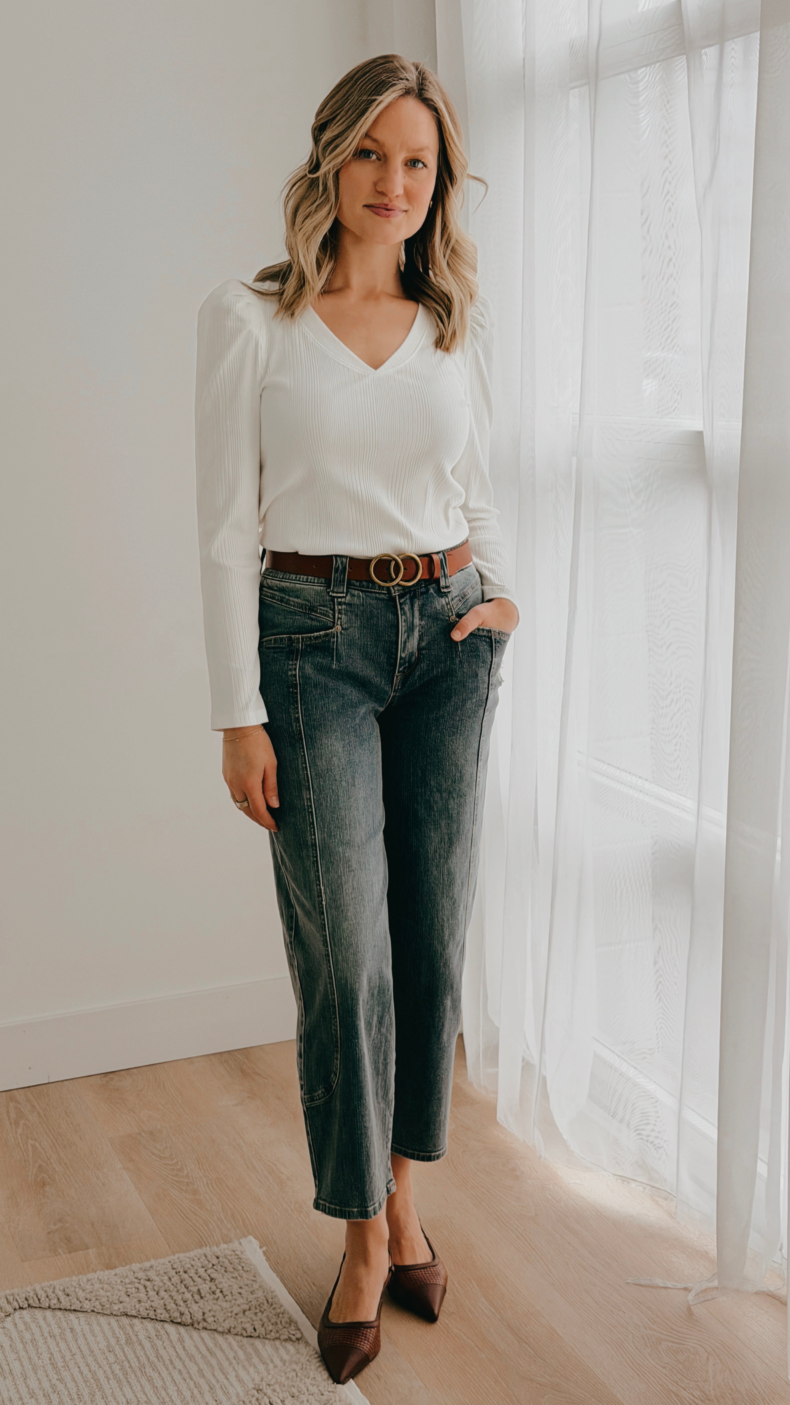 Embrace effortless style with these Wit and Wisdom Barley Barrel High Rise Denim in Artisnal that balance comfort and contemporary flair. The relaxed silhouette skims gently through the hips and thighs before opening softly at the knee - refined take on the barrel-leg trend. Crafted in a mid blue wash, they pair seamlessly with everything from tucked tees to oversized sweaters. Practical details include a zip fly with button closure, front slant pockets, and back patch pockets for everyday functionality.