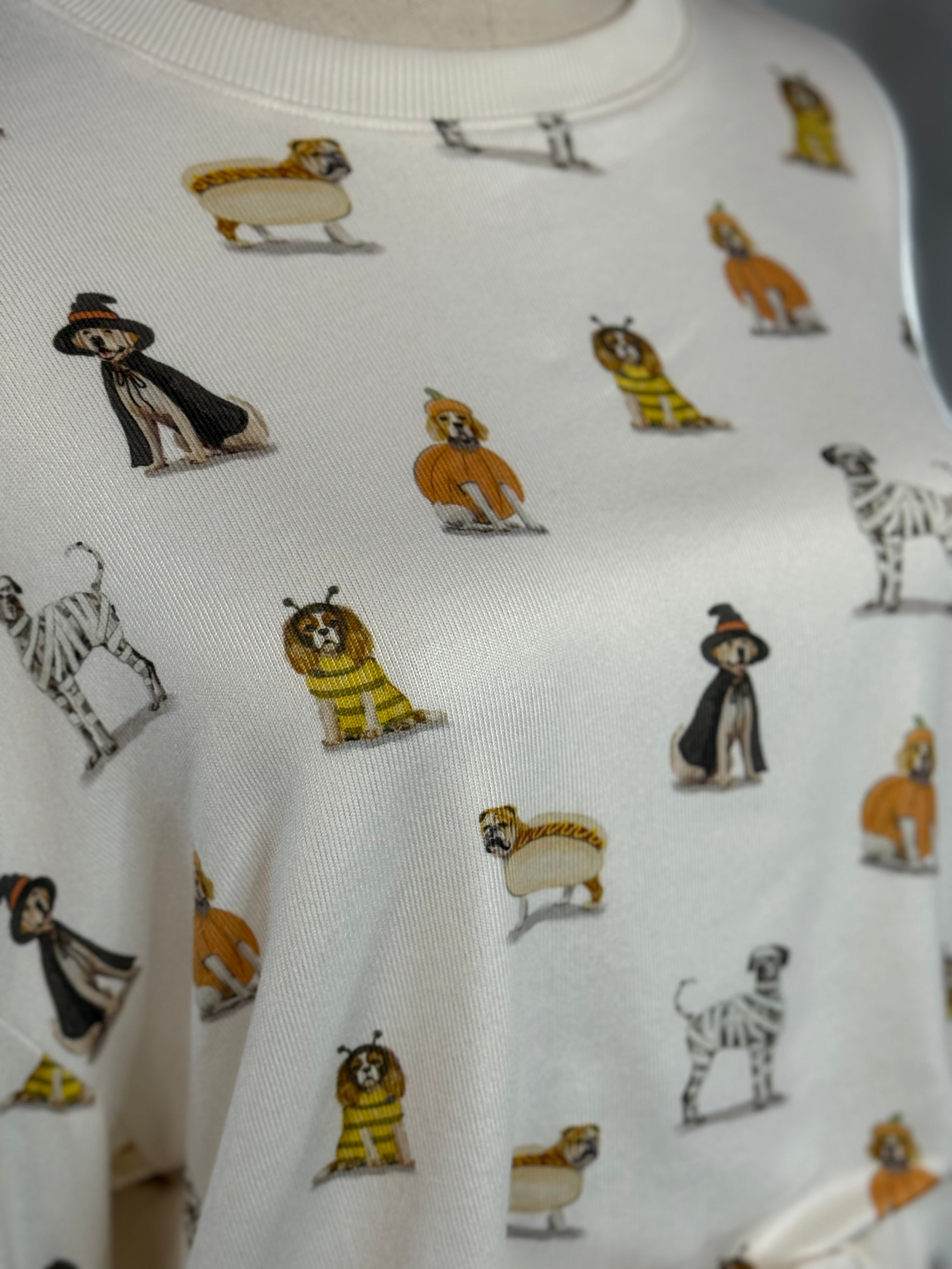 Our Z Supply Elle Pup Long Sleeve Top is a cozy pajama top made with plush knit fabric. With its Halloween-inspired dog print, this top is perfect for getting in the holiday spirit. It features a crew neckline, drop shoulder, banded cuffs and hem, and a classic fit. Pair it with our Sammie Pup Shorts (pictured) or any lounge pant for a comfortable and fun look.