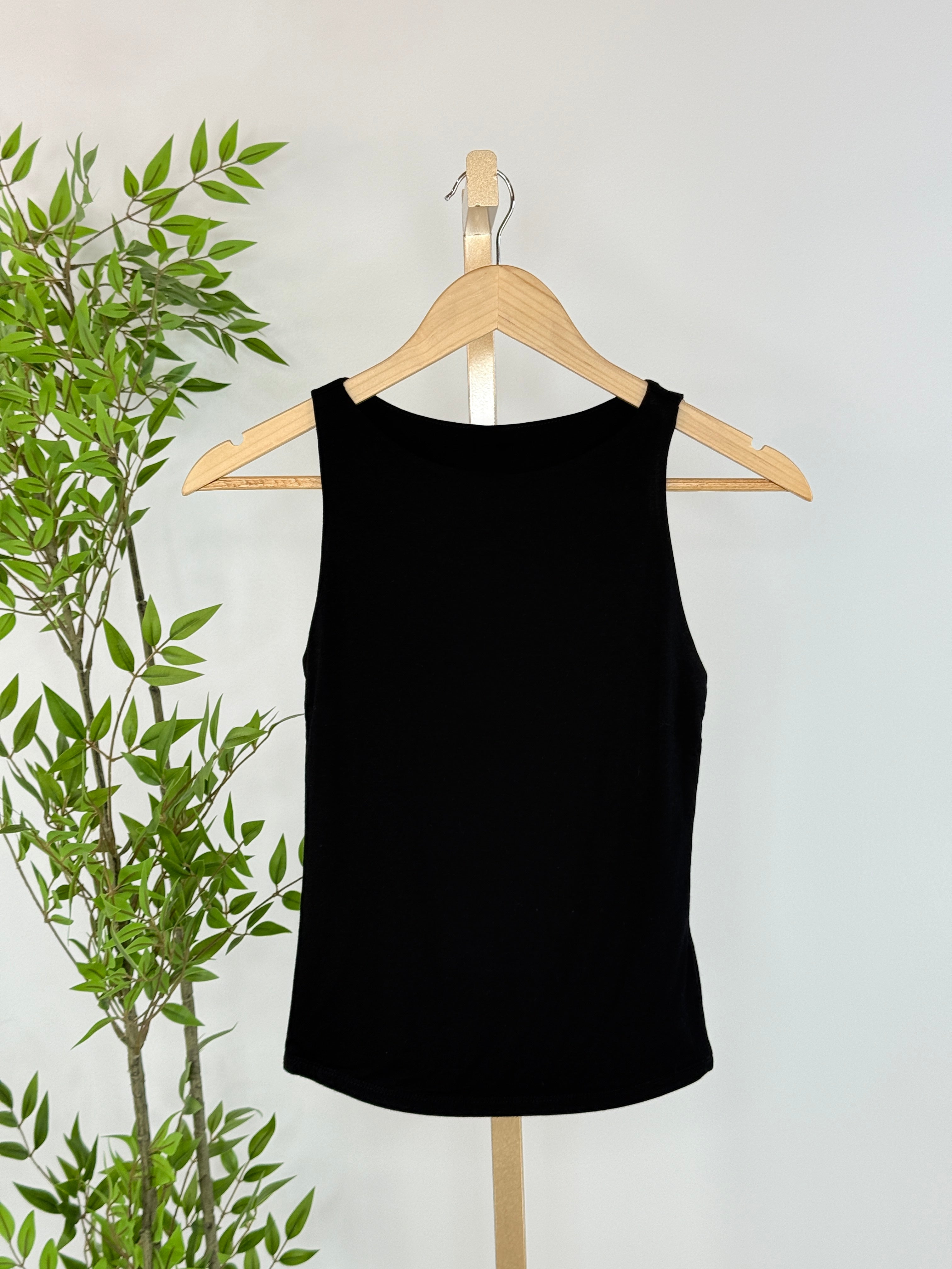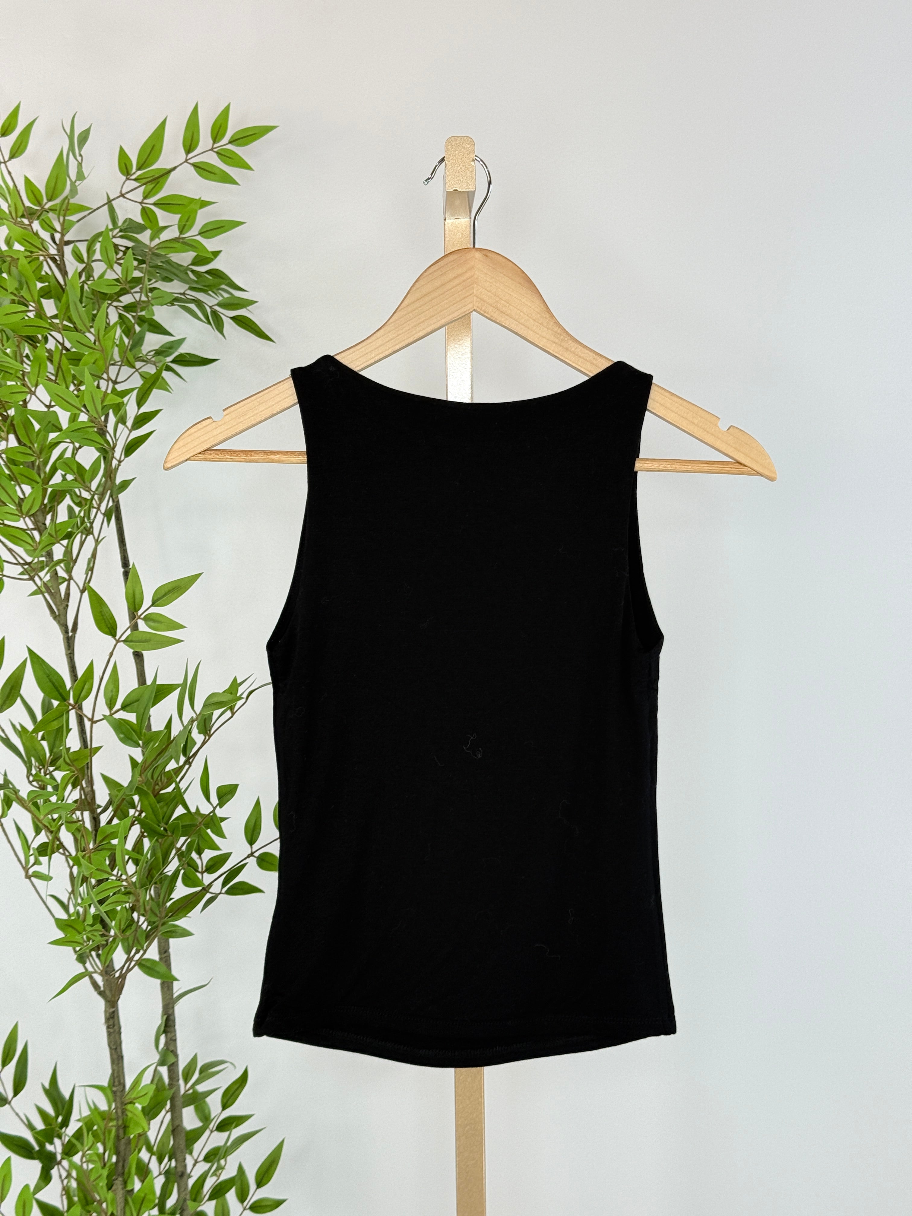 Sleek, refined, and endlessly versatile, the Midnight Contour Boat-Neck Tank in Black is a modern essential designed to elevate your everyday wardrobe. Featuring a double layer, clean, small boat neckline and a softly sculpted silhouette, this tank offers a polished look while maintaining all-day comfort. The smooth, stretch fabric gently contours for a flattering fit that layers beautifully or stands confidently on its own. The classic black hue makes it a go-to piece for effortless styling. Pair it with denim for casual sophistication or layer it under blazers and cardigans for a more elevated feel.