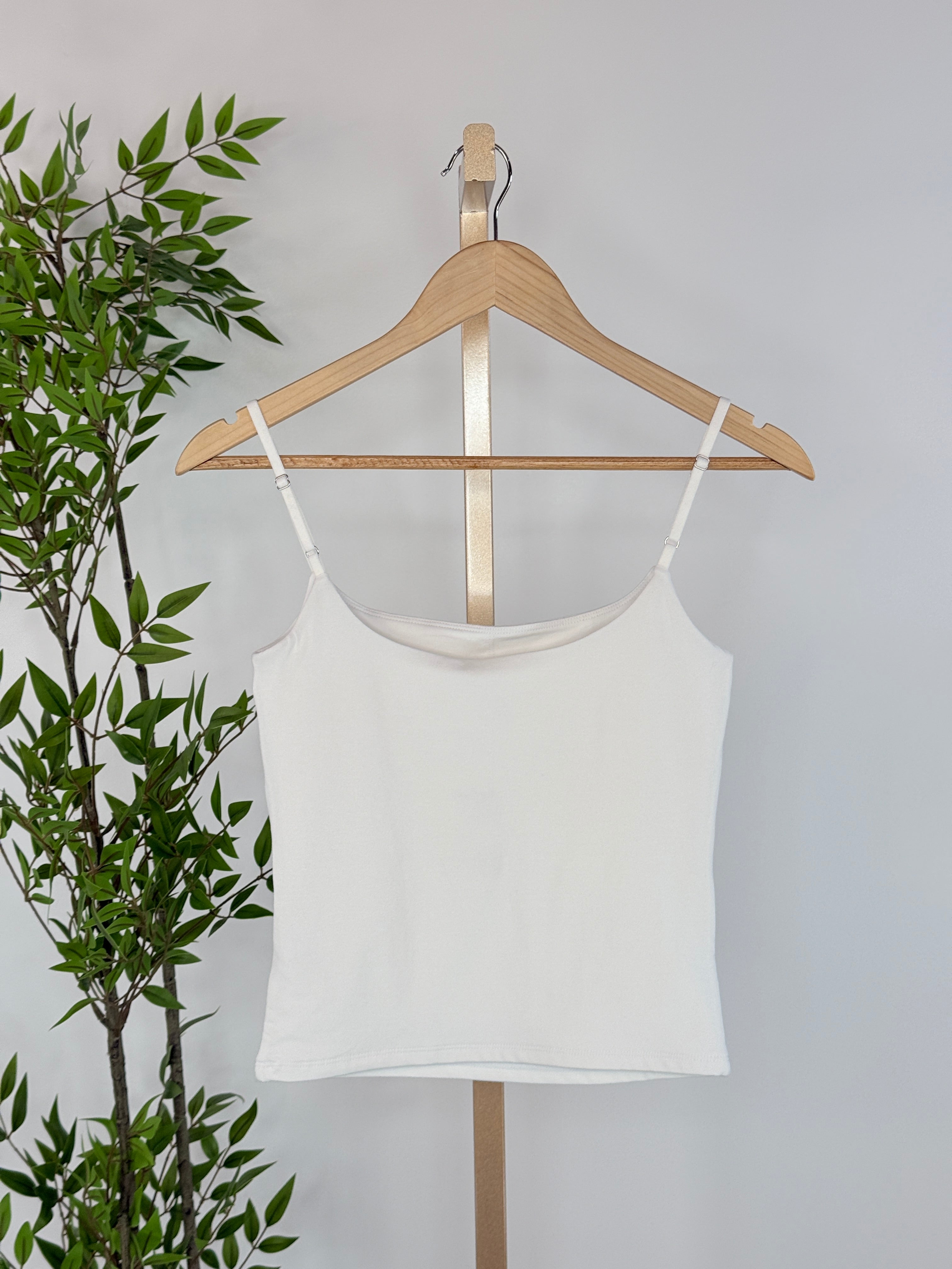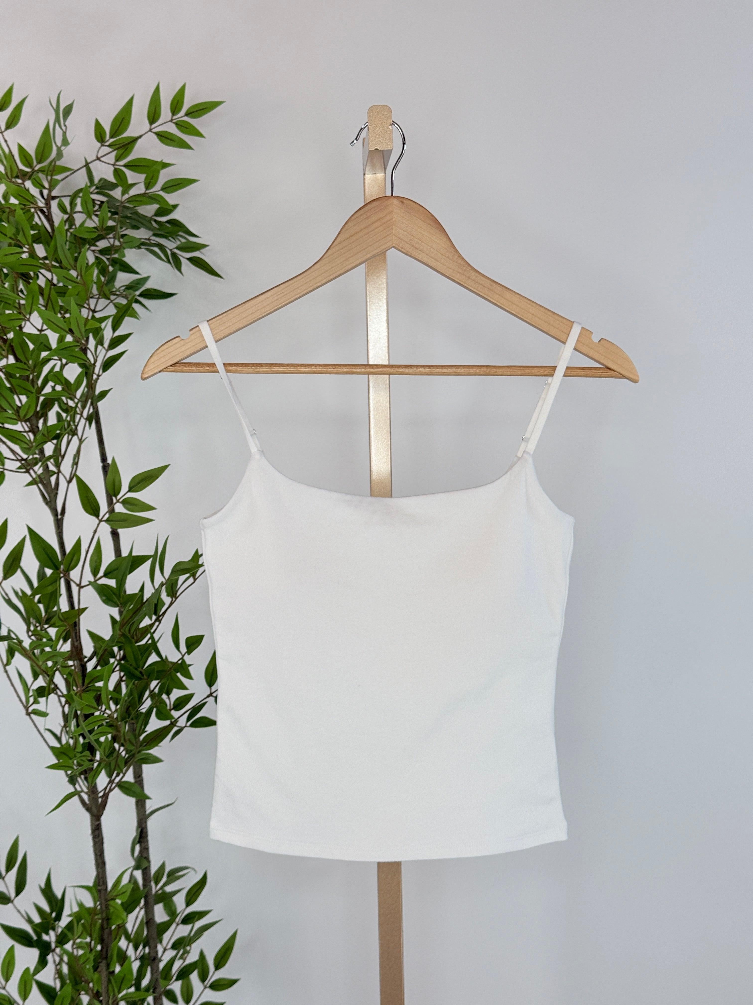 Every wardrobe needs that one perfect foundation piece, and the Rila Cotton Core Tank Top in White is exactly that. Designed with a flattering, streamlined silhouette and delicate adjustable straps and removable bra cups, this versatile cami offers effortless comfort and timeless simplicity. The soft, stretchy fabric hugs in all the right places while still allowing easy movement, making it ideal for layering under cardigans, blazers, and sweaters or wearing on its own for a clean, minimalist look. The fresh white tone brings a polished, elevated feel to any outfit, making it a year-round essential you'll reach for again and again.