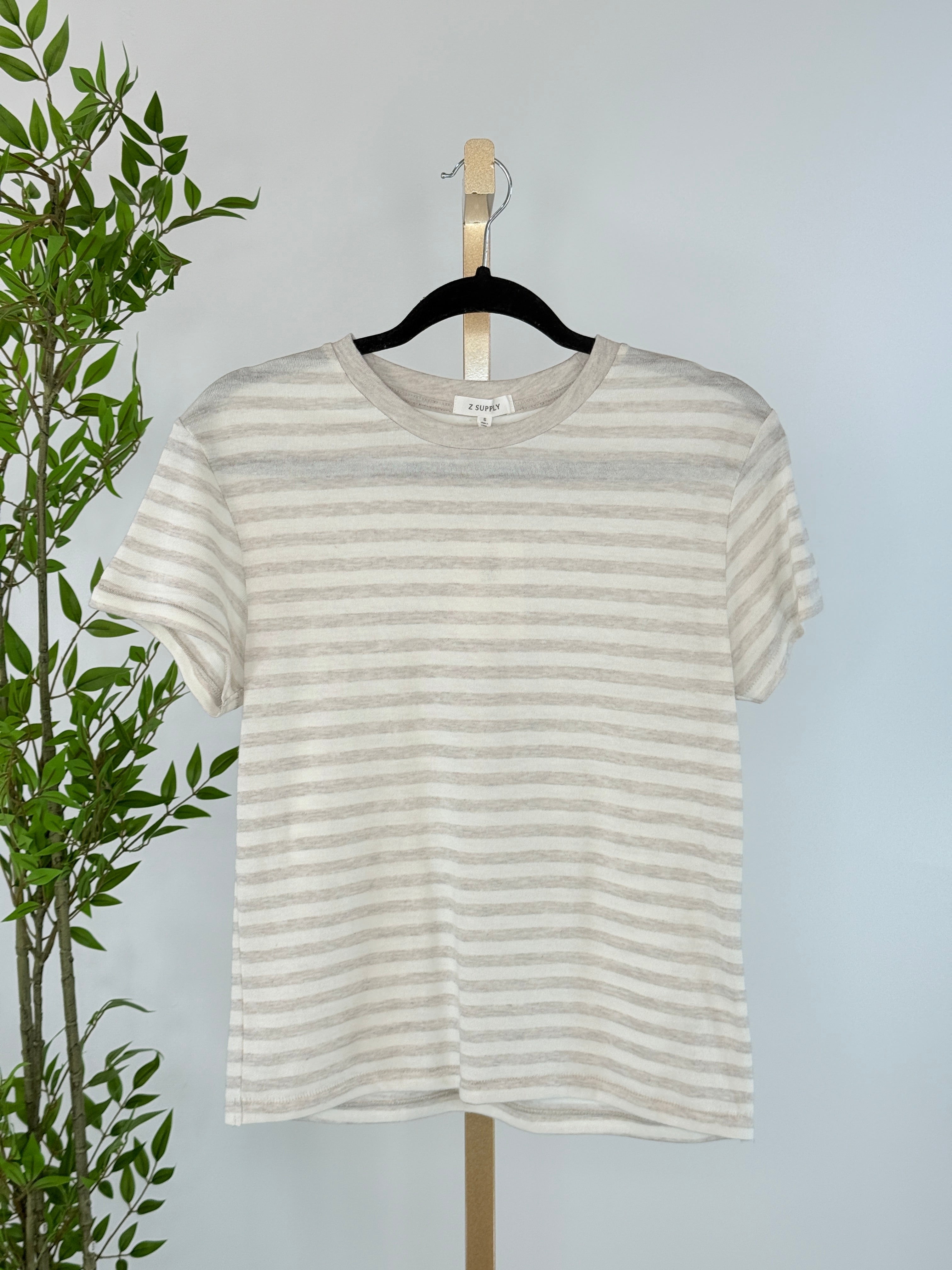 Easy and breathable, this Z Supply Tourist Striped Tee in Natural Heather is crafted from lightweight airy knit jersey for a soft, barely-there feel. The relaxed fit and timeless stripes make it your go-to for casual days, styled effortlessly with jeans or shorts.