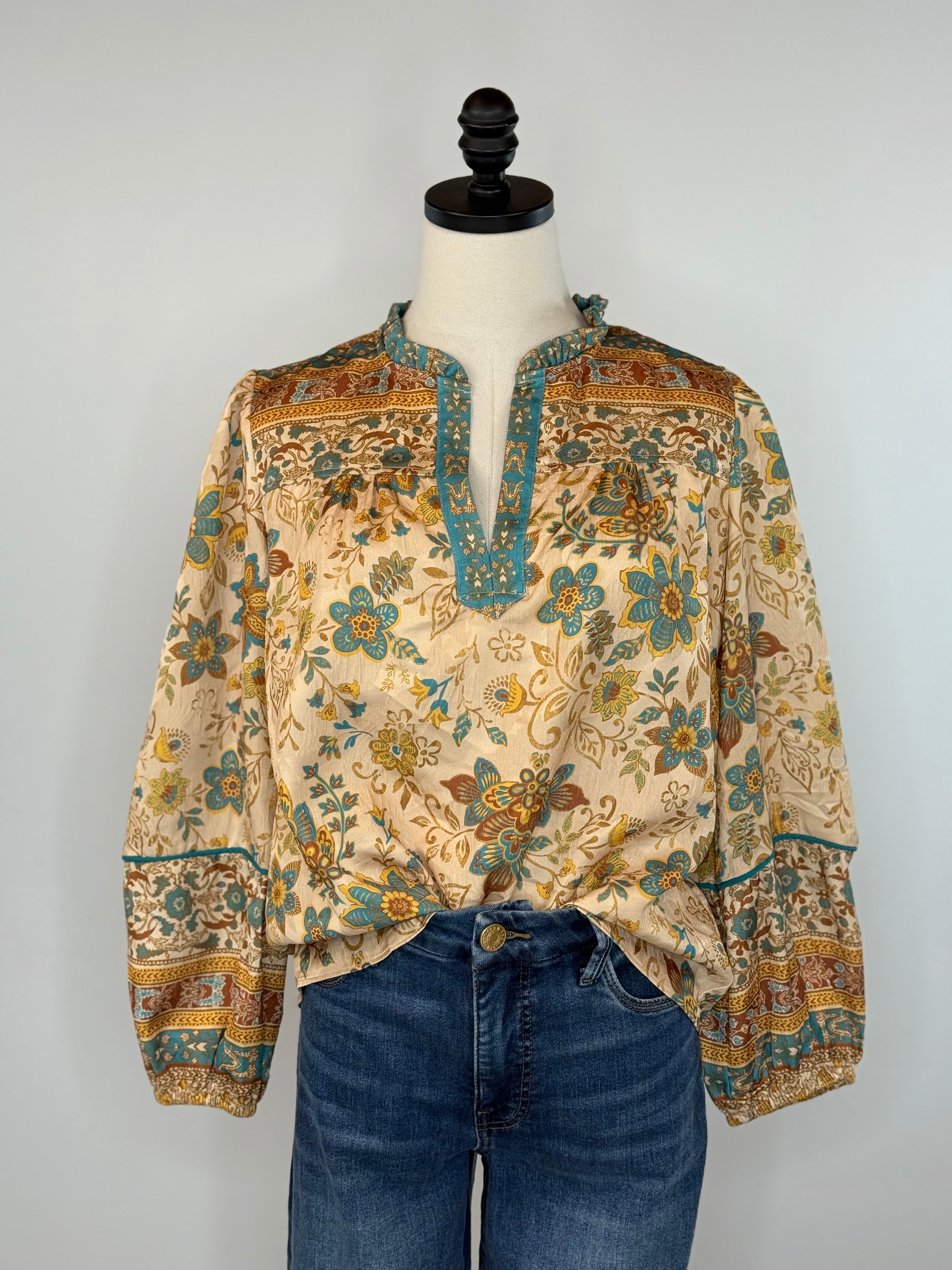• Ashcroft Top in Amber and Turquoise Floral $68.00