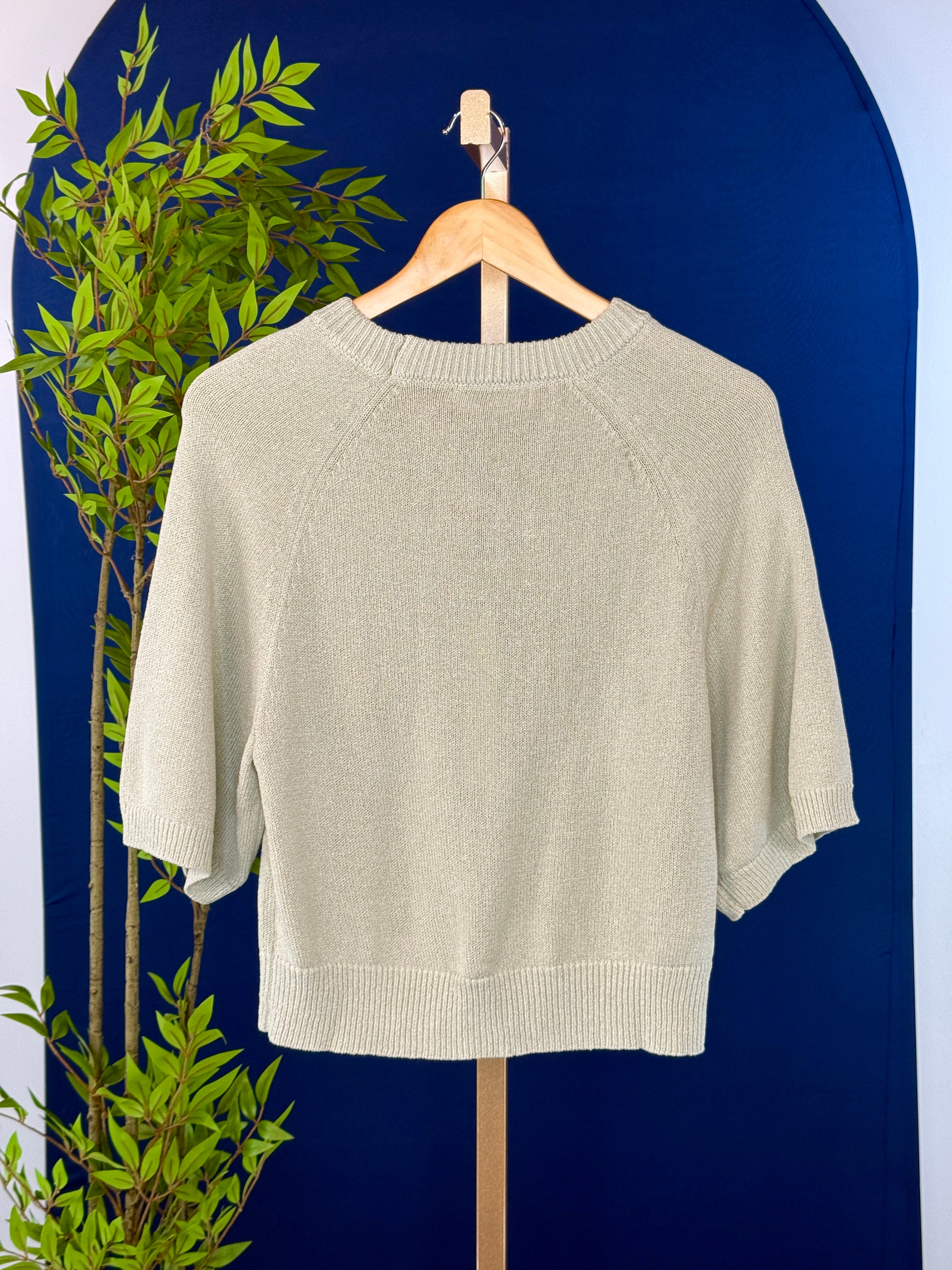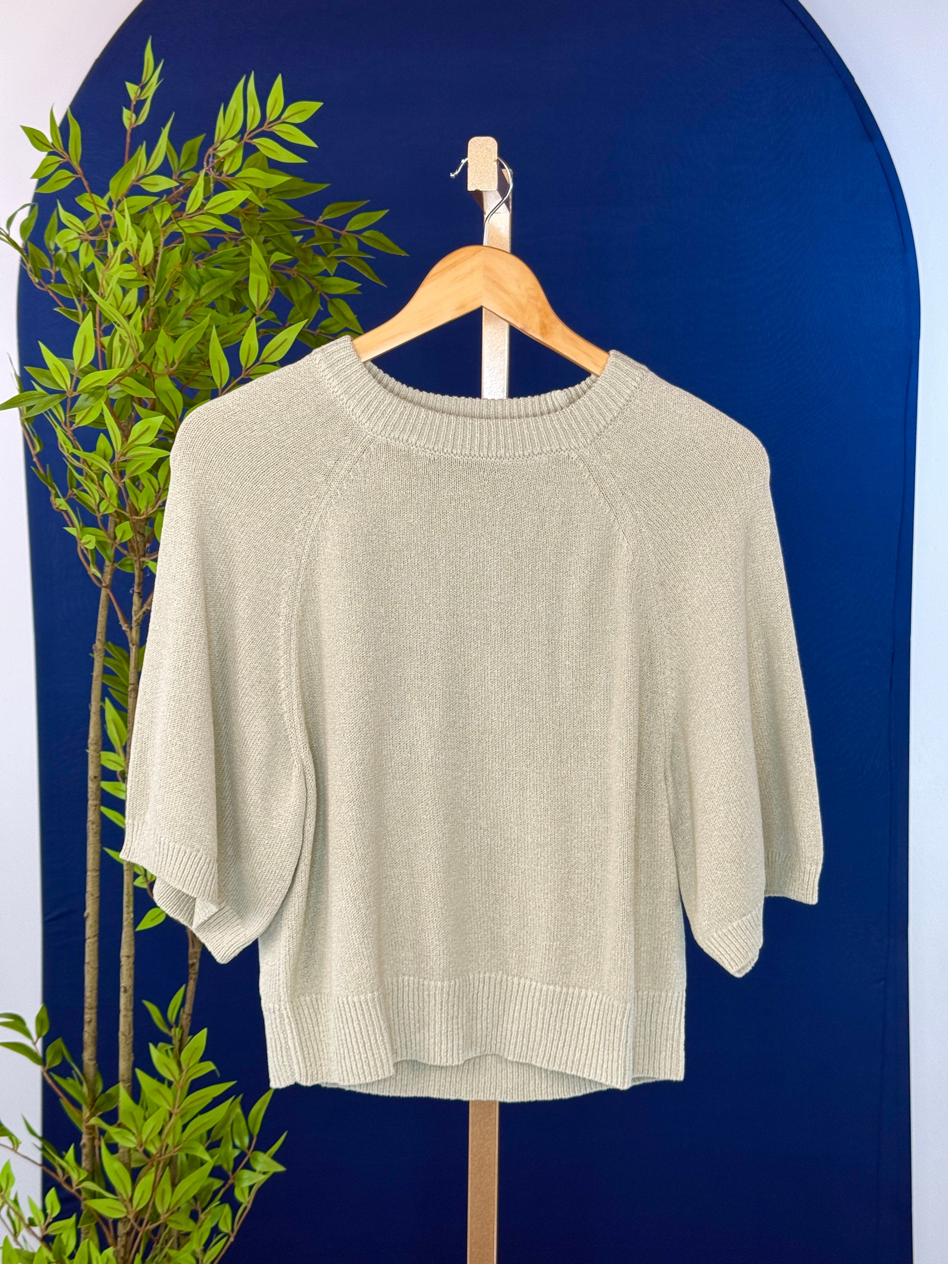 Effortlessly relaxed with a refined finish, the Drift Sweater in Muted Sage is the perfect blend of comfort and understated style. Designed in a soft sage hue, this lightweight sweater top brings warmth and versatility to your everyday wardrobe. Featuring a classic crew neckline and modern elbow-length sleeves, this women’s short sleeve sweater offers a relaxed silhouette that drapes beautifully without feeling bulky. The soft knit texture and ribbed trim at the neckline and hem create a polished yet easy look that transitions seamlessly from season to season. Style it with tailored trousers for a clean, elevated outfit or pair it with denim for a laid-back, everyday feel. Its timeless neutral tone makes it a layering essential you’ll reach for again and again.