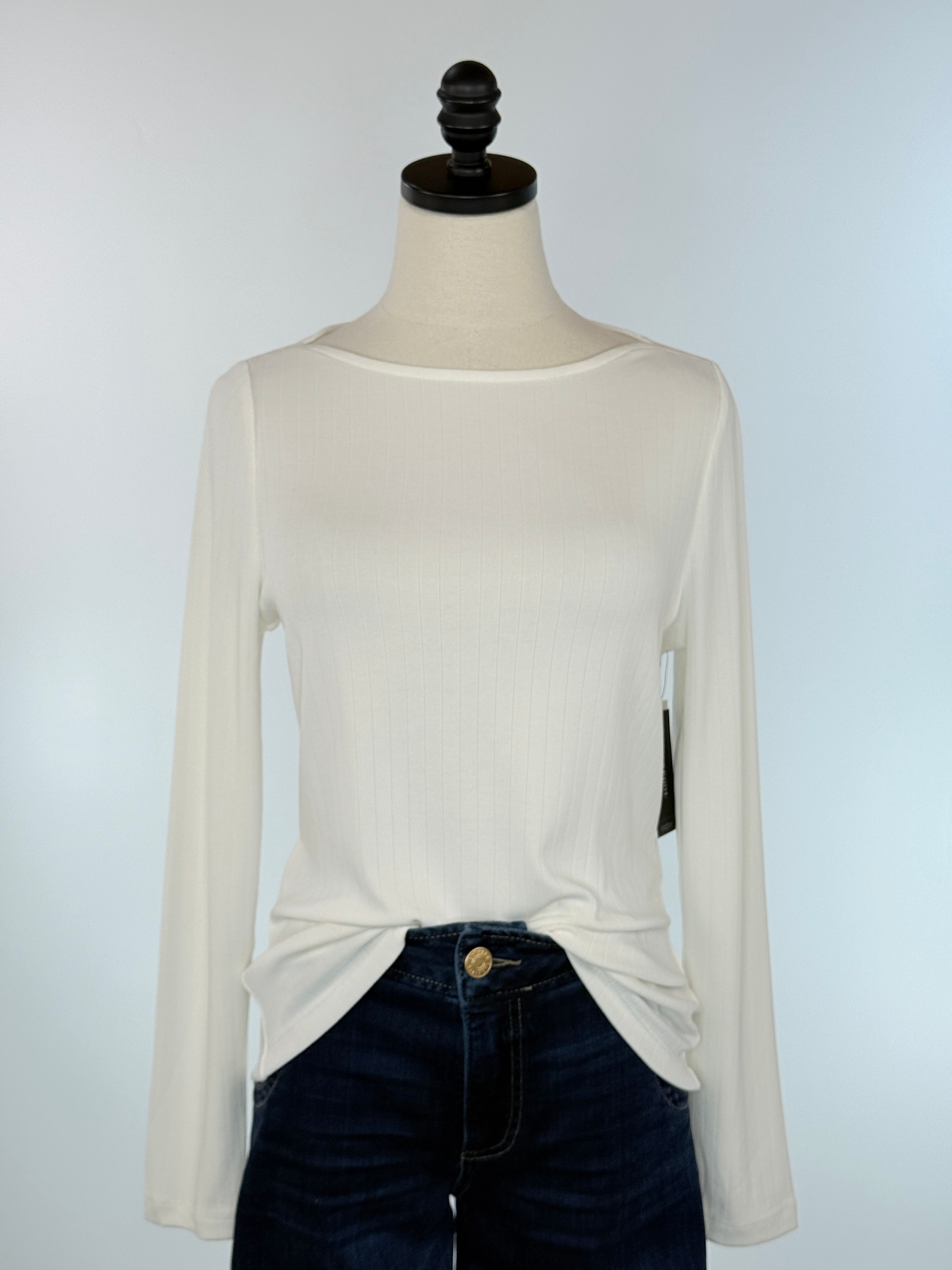 Liverpool Long Sleeve Boat Neck Top in Washed Cream