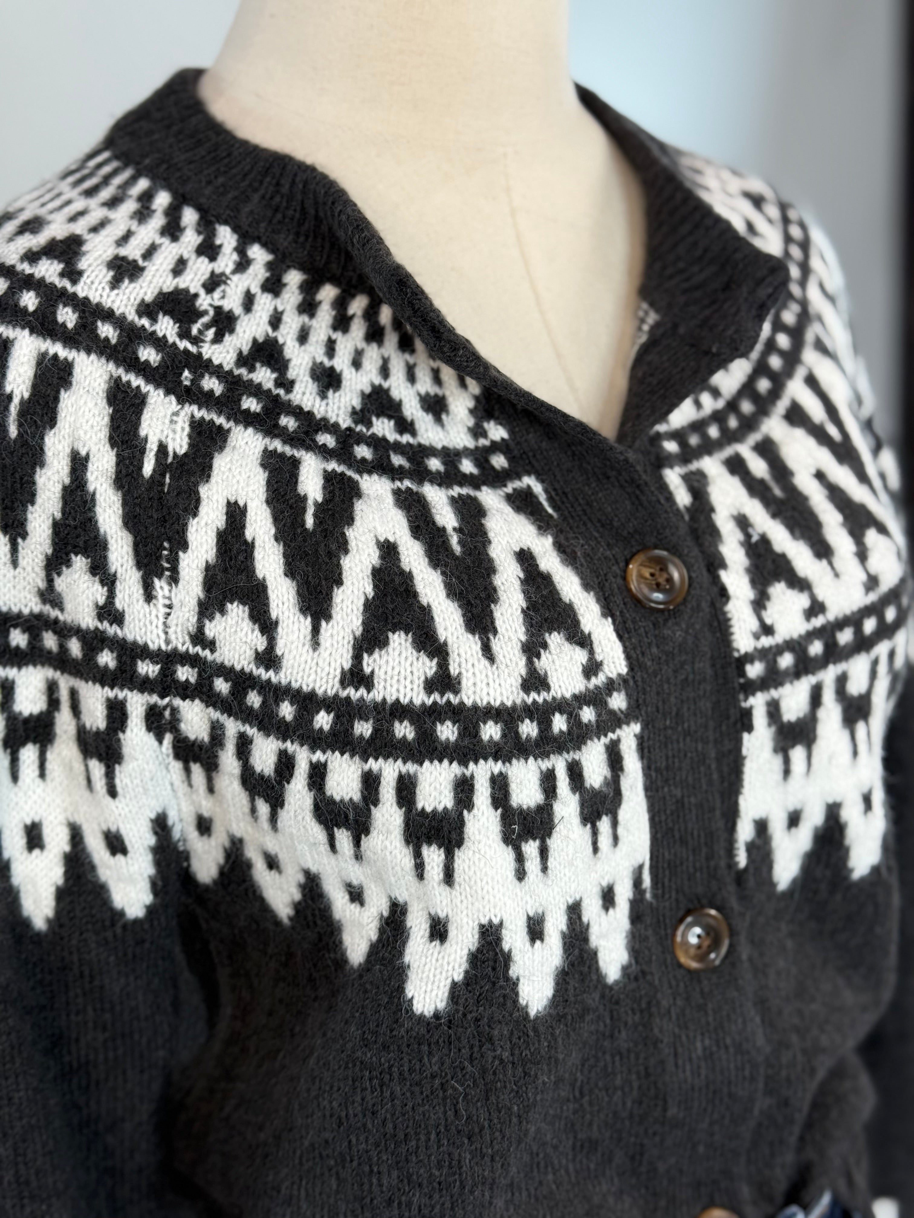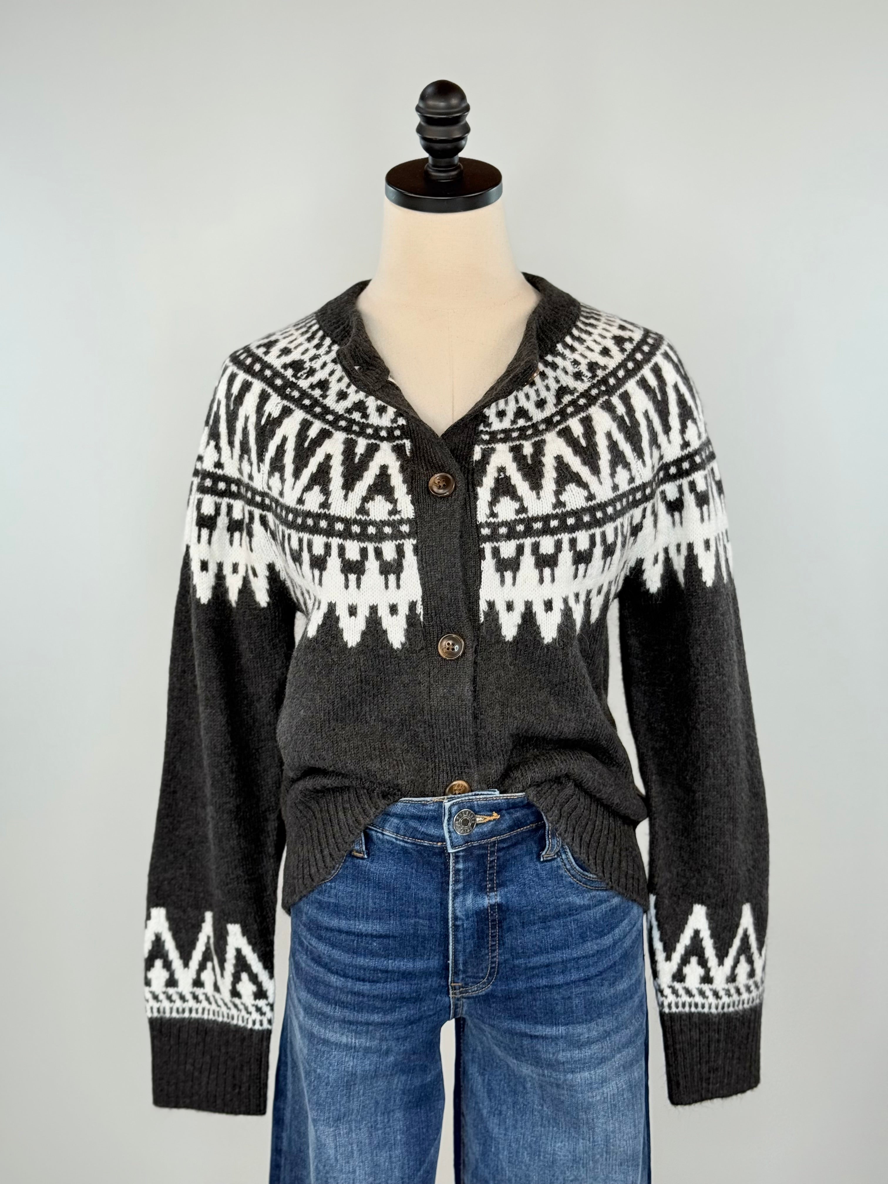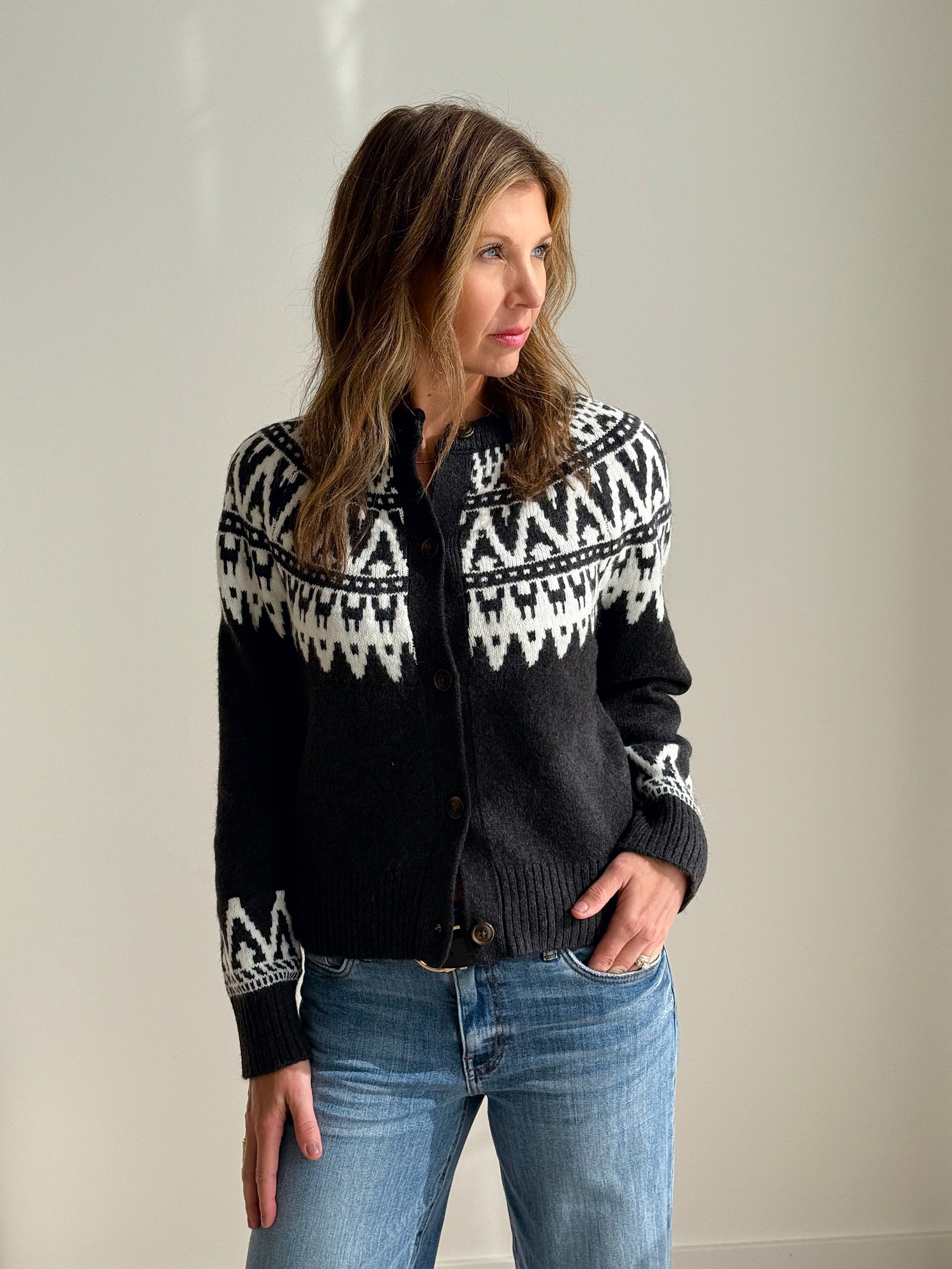 Sanctuary Fairisle Crewneck Cardi in Ink Multi
