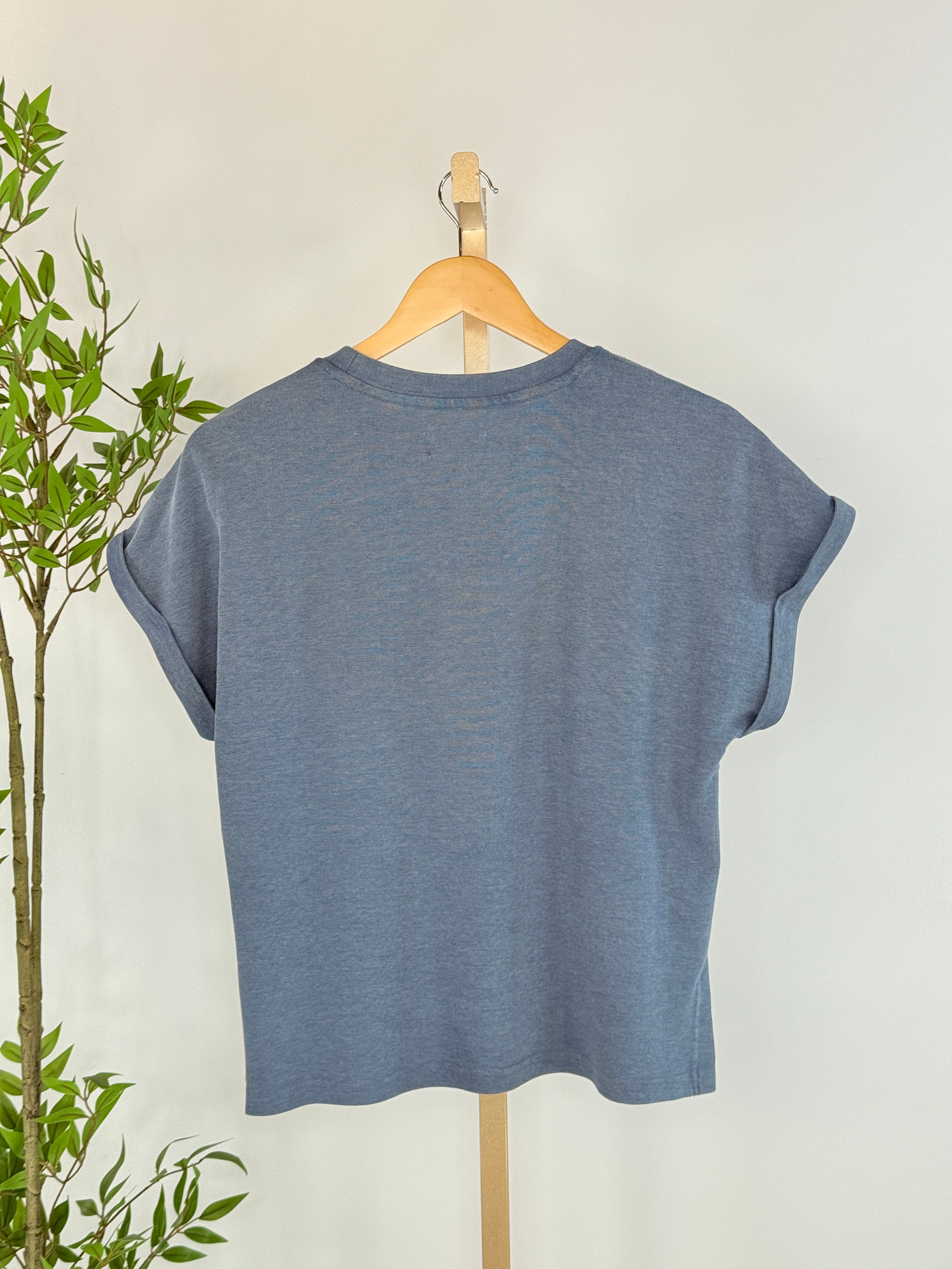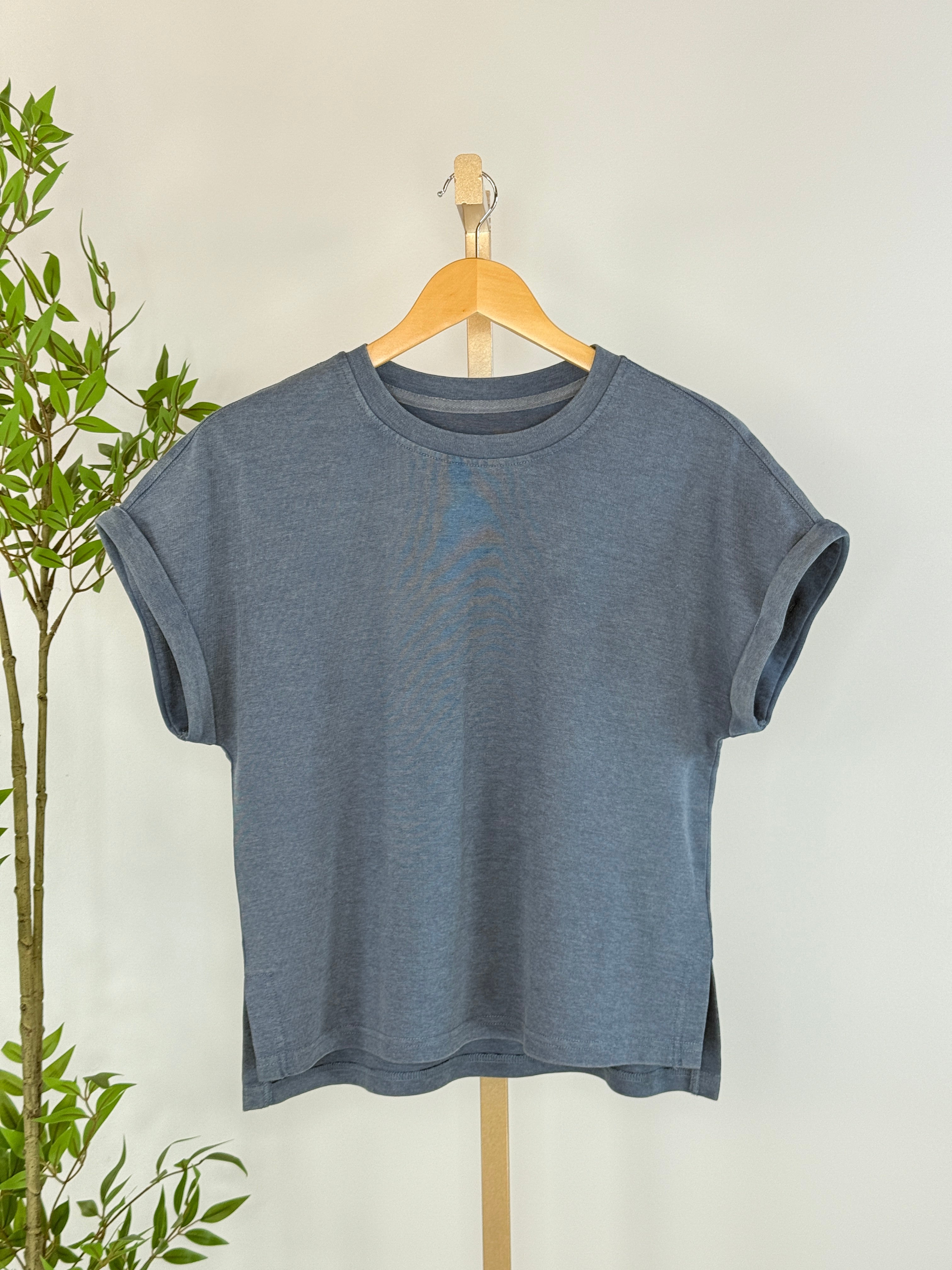 Meet your new go-to, the Thread and Supply Nova Top in Washed Denim Blue is all about relaxed comfort with a polished finish. Crafted in a soft, breathable cotton-blend fabric, this effortless and lightweight sweatshirt features a classic crew neckline, rolled cap sleeves, and a relaxed silhouette that drapes just right. The subtle curved hem and side slit detail add an elevated touch to an otherwise timeless essential. The muted blue tone makes this top endlessly versatile — perfect for pairing with denim or layering under jackets. For a complete look pair with the Thread and Supply Nova Pants in Washed Denim Blue (pictured).