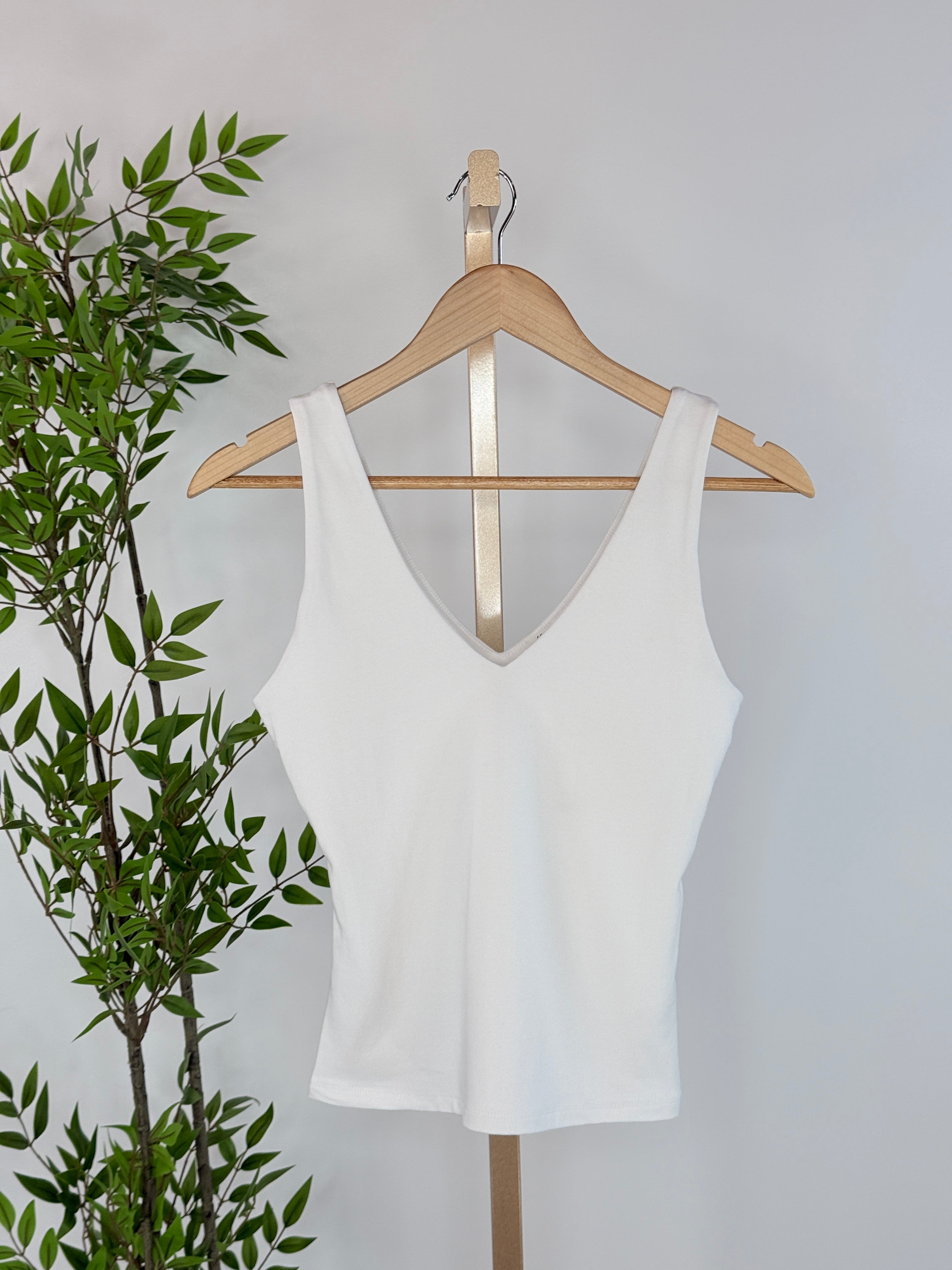 Valentina Cotton Core V Neck Tank in White