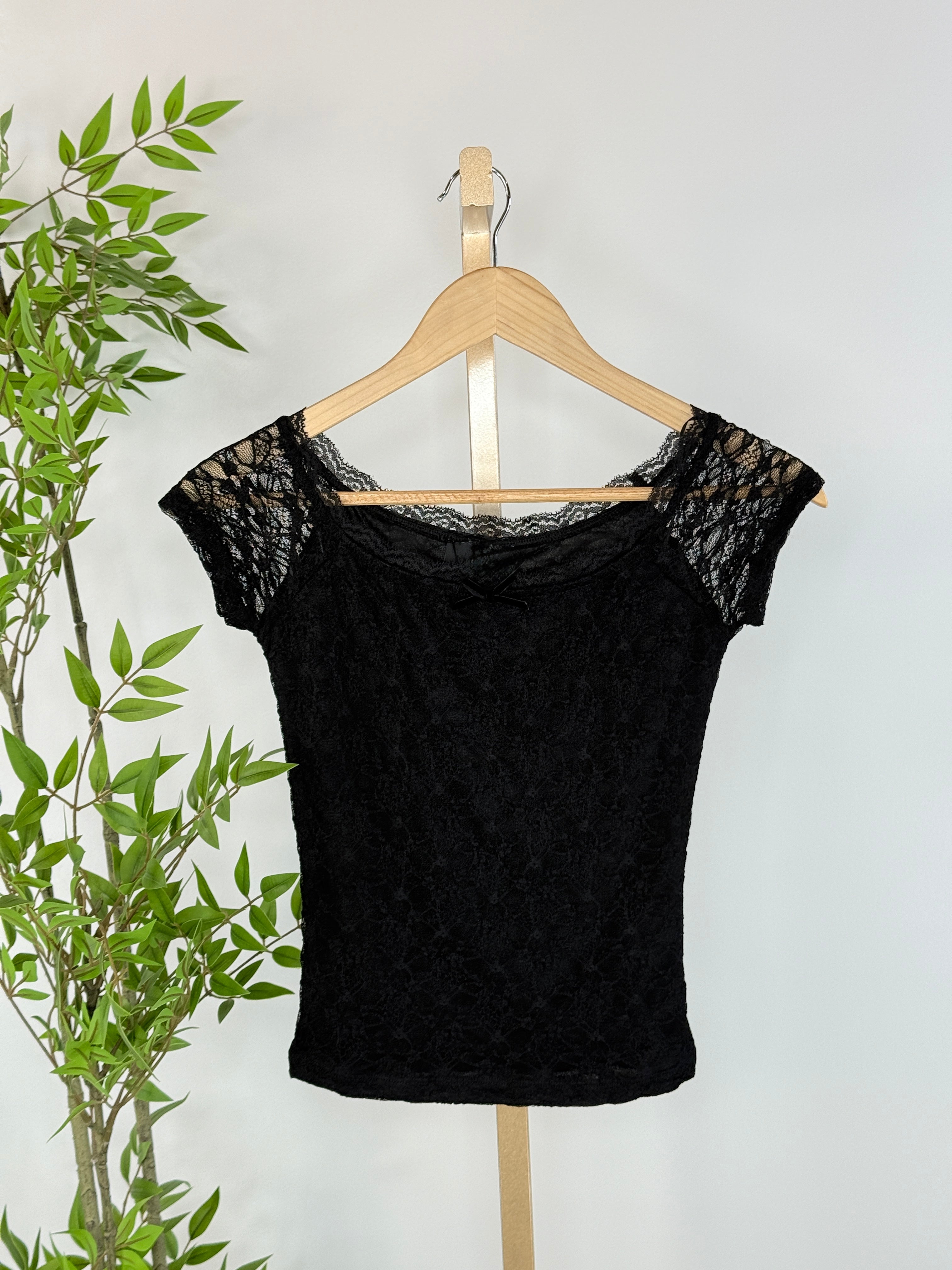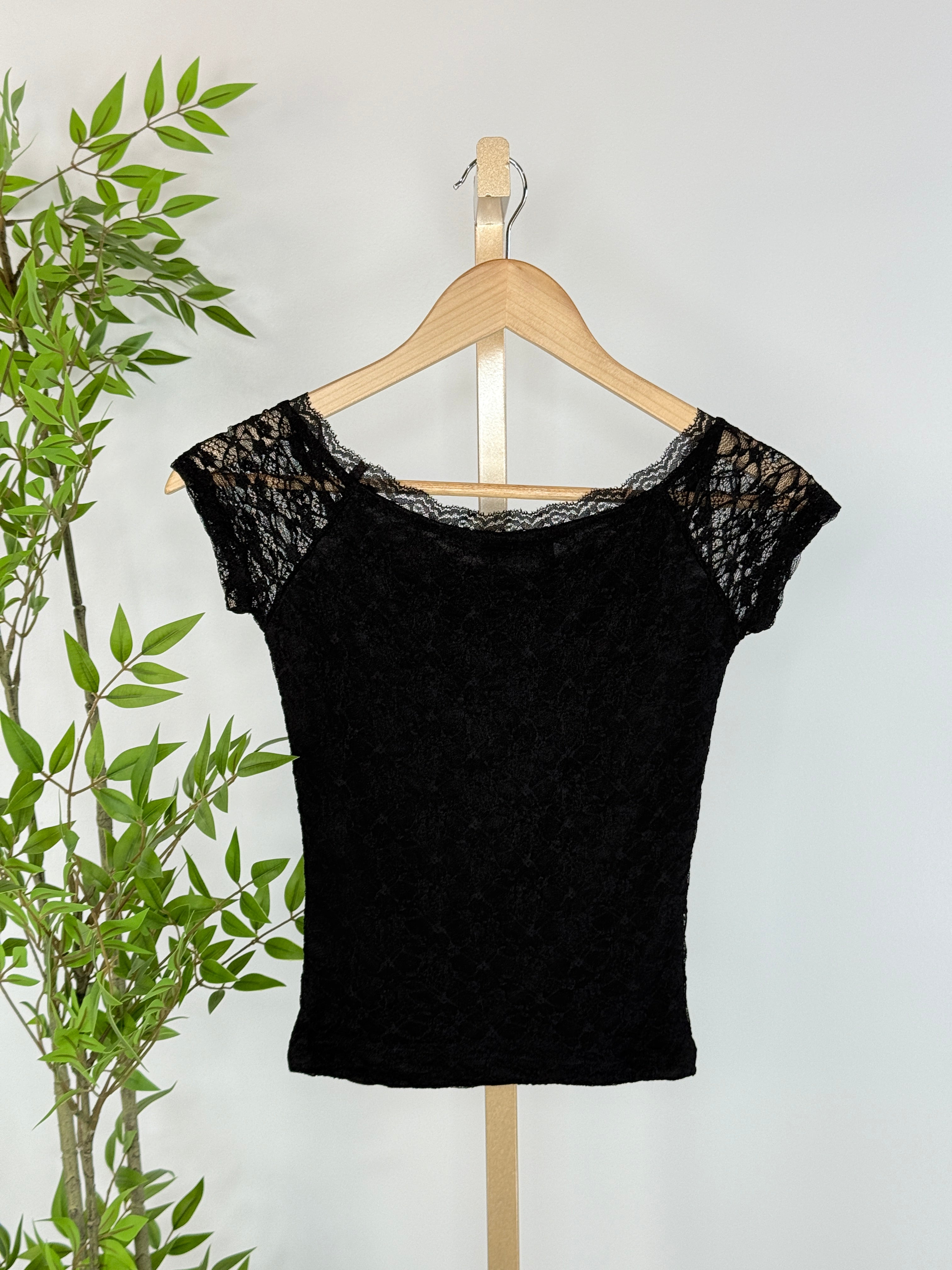 Soft, romantic, and effortlessly feminine, the Whim Lace Top in Black is the kind of piece that instantly elevates your everyday style. Designed in a delicate black lace with an intricate floral pattern, this fitted top features cap sleeves and a flattering wide neckline that beautifully frames the collarbone. Lightweight with comfortable stretch, this lace top layers seamlessly under blazers, cardigans, and denim jackets, while still making a statement worn on its own. The subtle scalloped trim and all-over lace texture give it a timeless, feminine feel that transitions effortlessly from day to night.