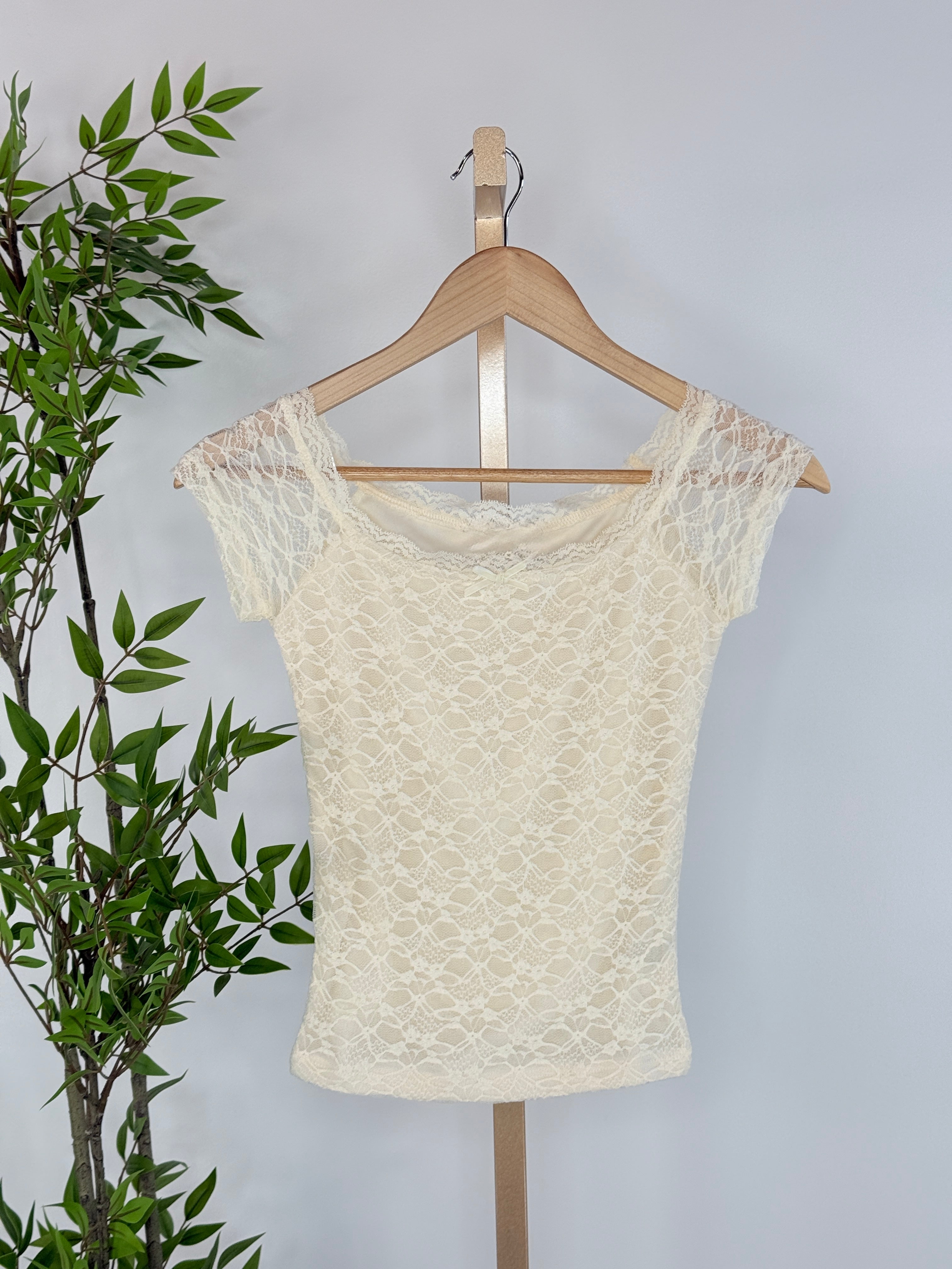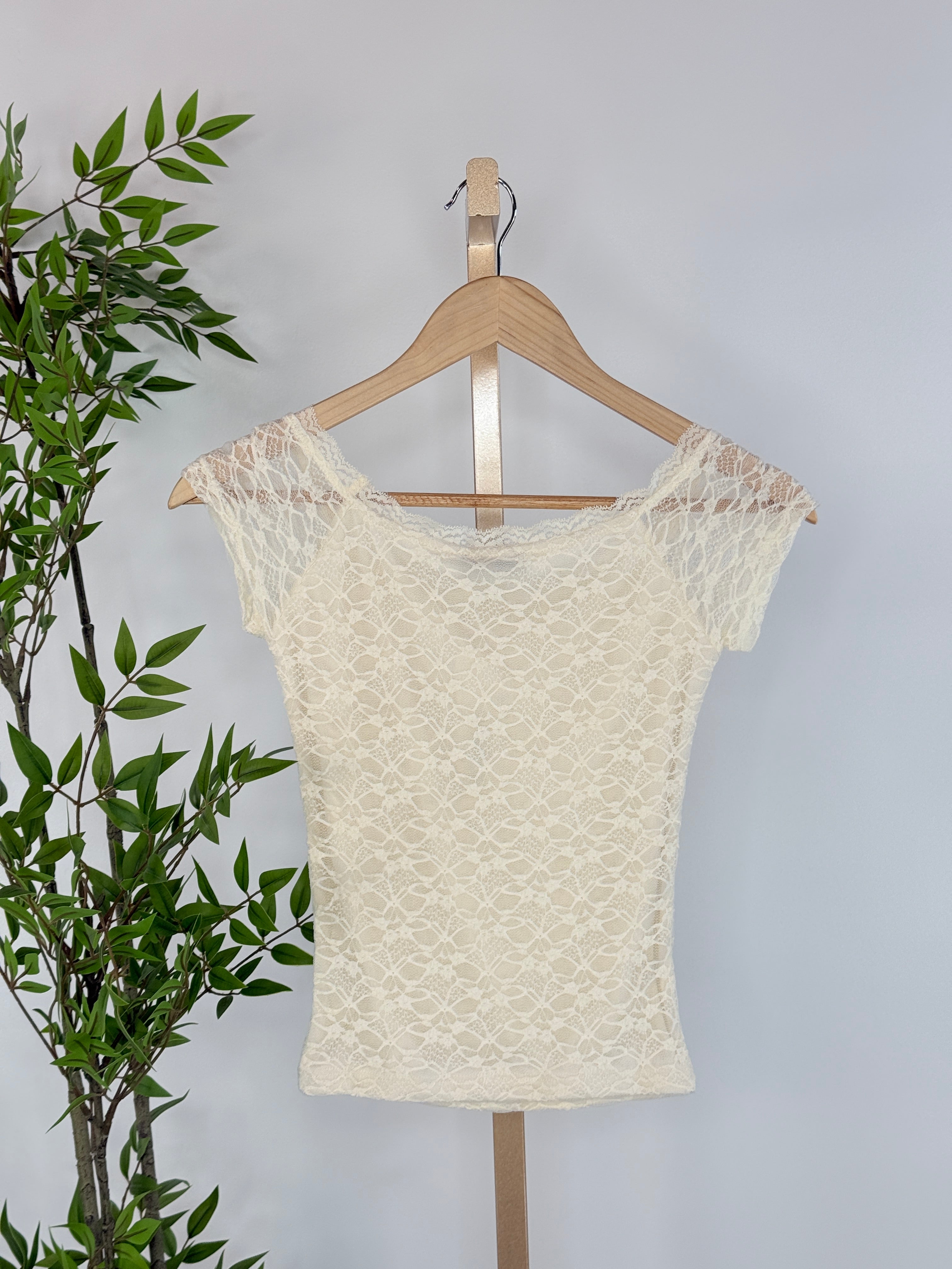 Soft, romantic, and effortlessly feminine, the Whim Lace Top in Ivory is the kind of piece that instantly elevates your everyday style. Designed in a delicate ivory lace with an intricate floral pattern, this fitted top features cap sleeves and a flattering wide neckline that beautifully frames the collarbone. Lightweight with comfortable stretch, this lace top layers seamlessly under blazers, cardigans, and denim jackets, while still making a statement worn on its own. The subtle scalloped trim and all-over lace texture give it a timeless, feminine feel that transitions effortlessly from day to night.