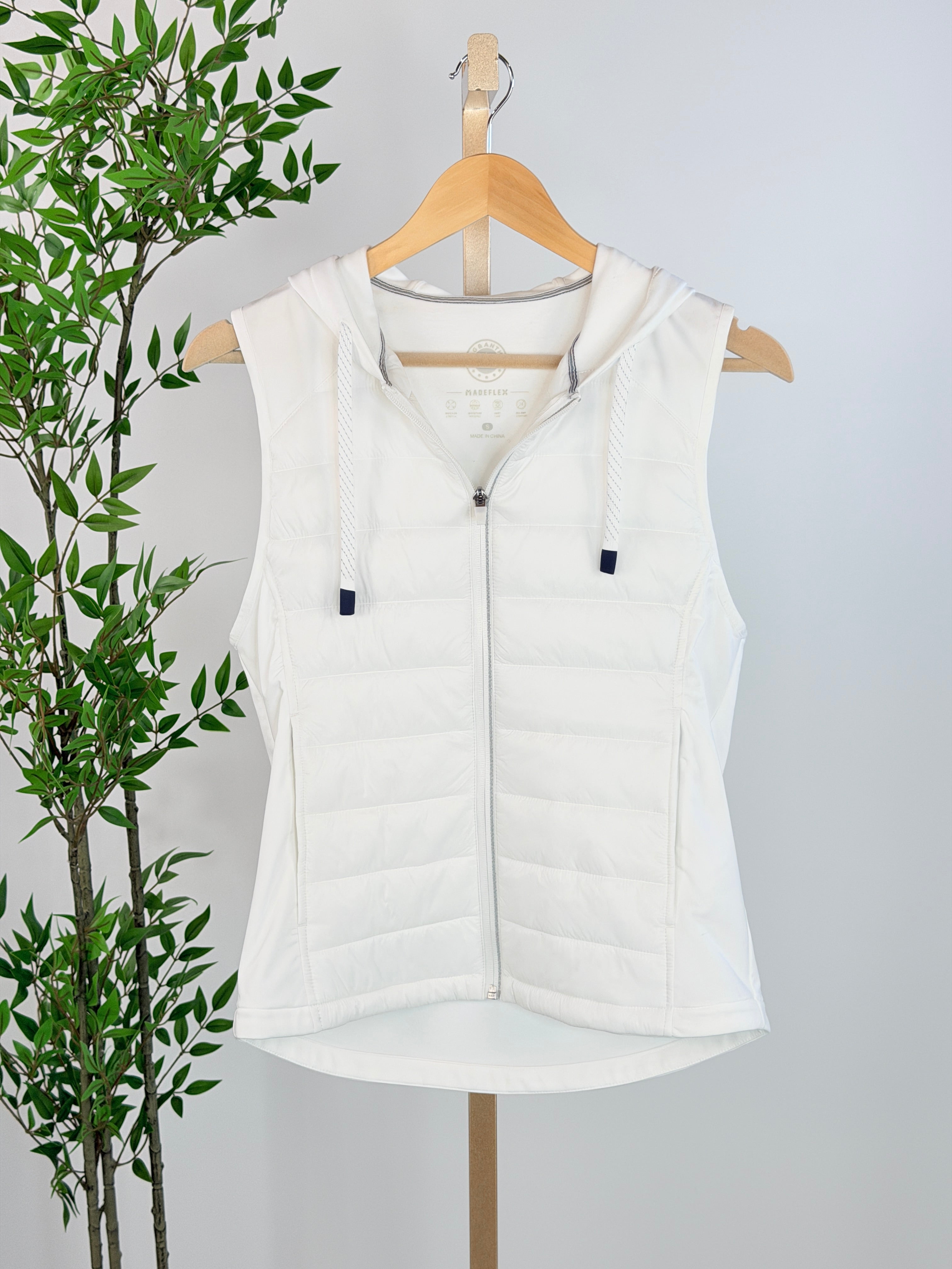 Engineered for layering without the bulk, this hooded puffer vest balances insulation with breathability to keep you warm without overheating. The lightweight construction makes it ideal for transitional weather, while the full-length front zipper and functional hand pockets add practical appeal. Designed to pair effortlessly with your everyday wardrobe while maintaining a polished, put-together look.