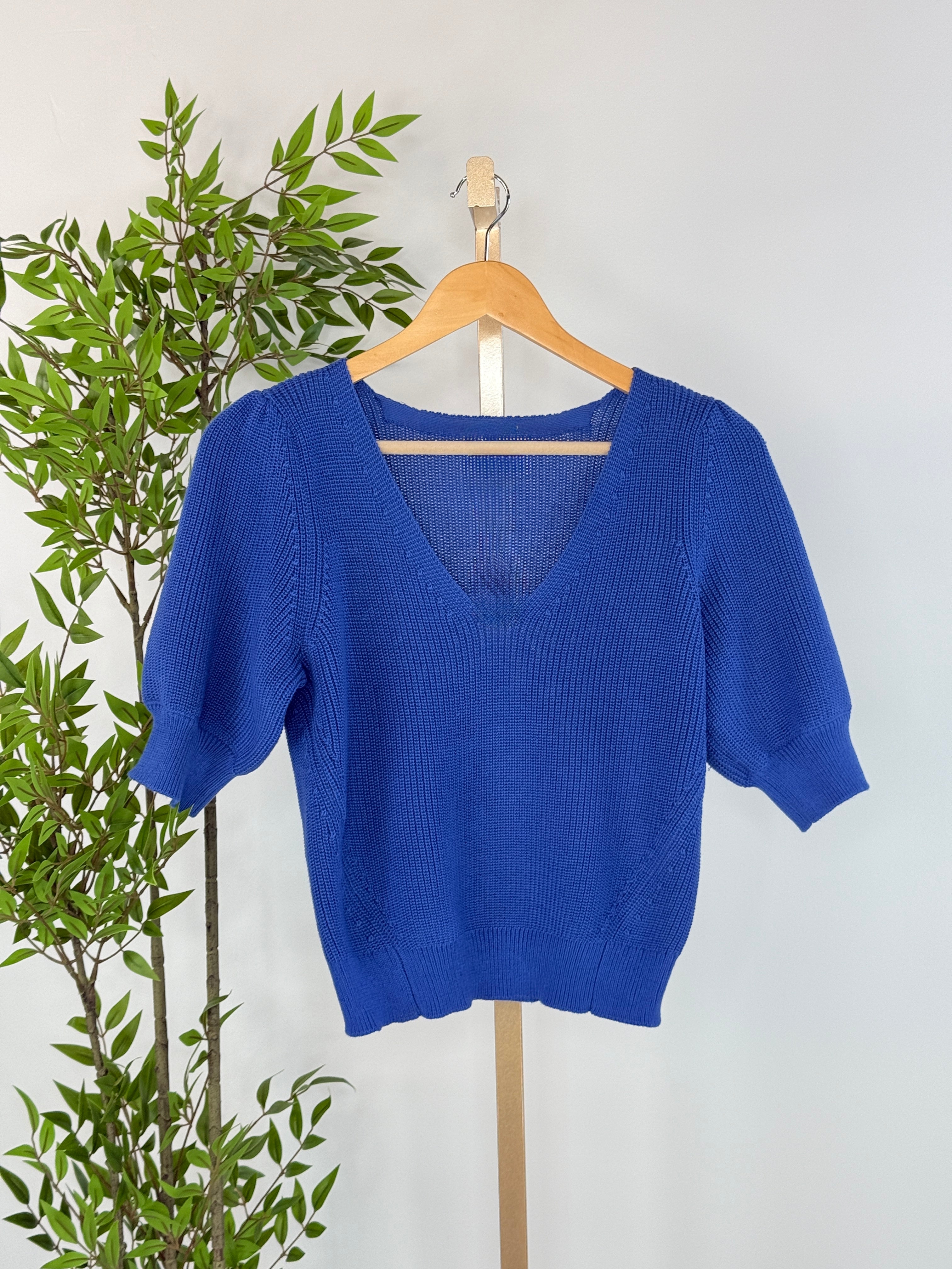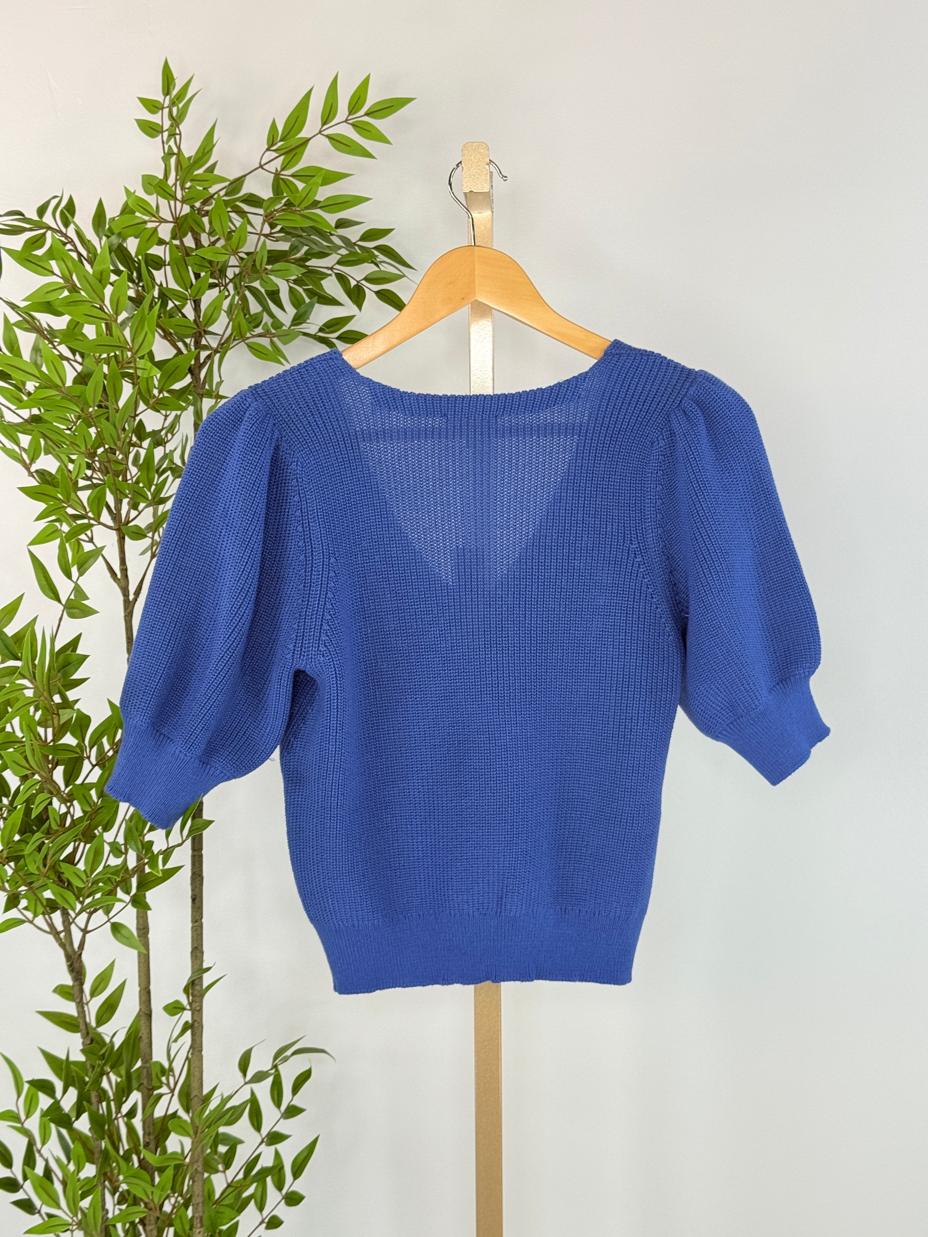 The Phoebe Sweater in Royal combines timeless elegance with thoughtful design details. A deep v-neckline and puffed 3/4 sleeves create a refined silhouette, while intricate open embroidery throughout adds texture and charm. The mid-weight knit feels incredibly soft against your skin, offering comfort without bulk. Whether you're dressing up for work or keeping it casual, this sweater pairs seamlessly with trousers, skirts, or jeans for a polished, put-together look you'll reach for again and again.