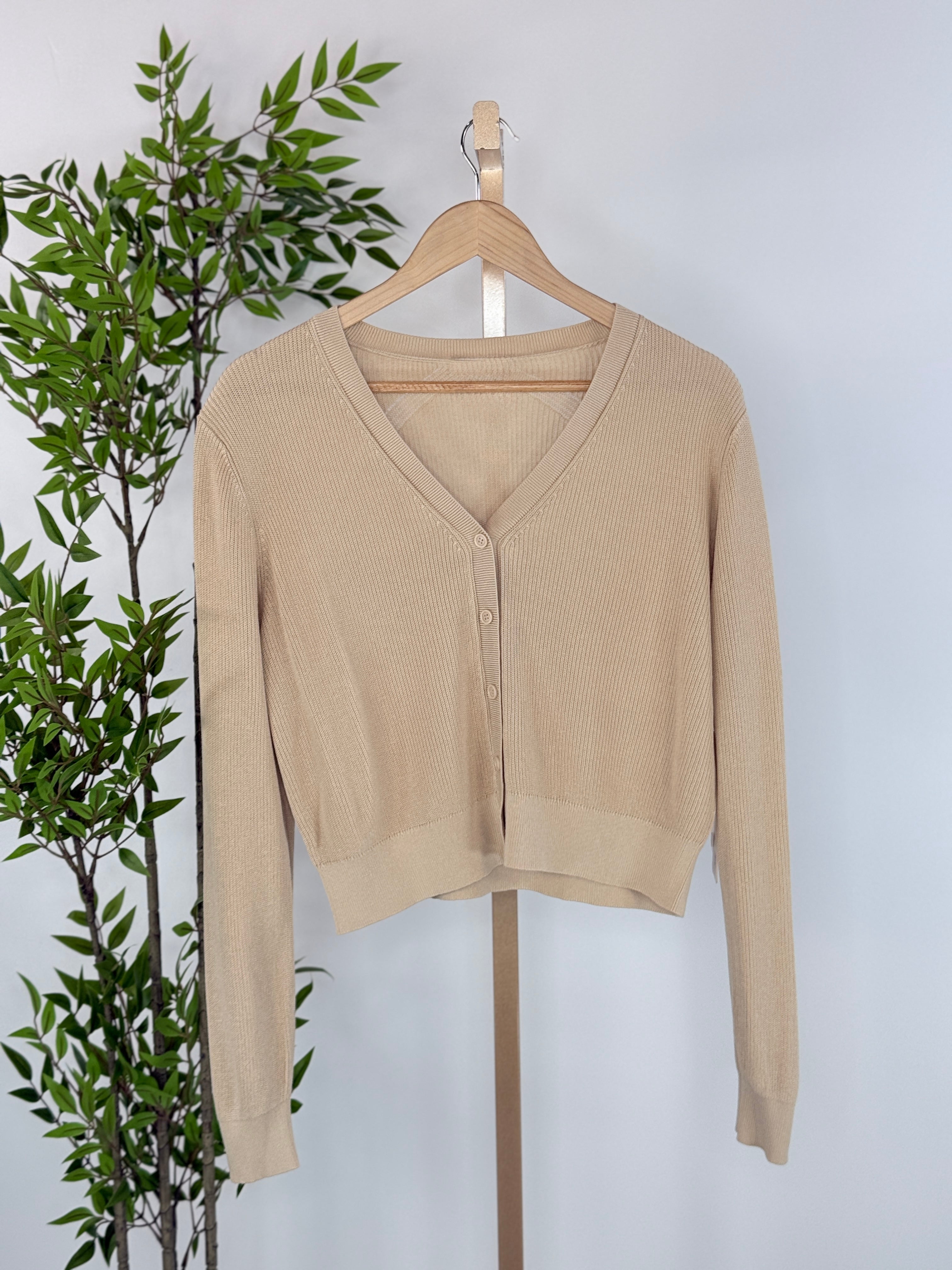 Simple, soft, and endlessly wearable, the Kerisma Misu Cardigan in Beige is the definition of effortless layering. Designed in a lightweight ribbed knit, this cardigan features a flattering V-neckline, delicate button-front closure, and a crop silhouette that pairs beautifully with high-rise denim, skirts, or dresses. The smooth, breathable fabric makes it ideal for year-round wear—easy to throw on, easy to style, and always polished. Whether worn buttoned as a top or open as a layer, this piece is a true wardrobe staple for elevated everyday outfits.
