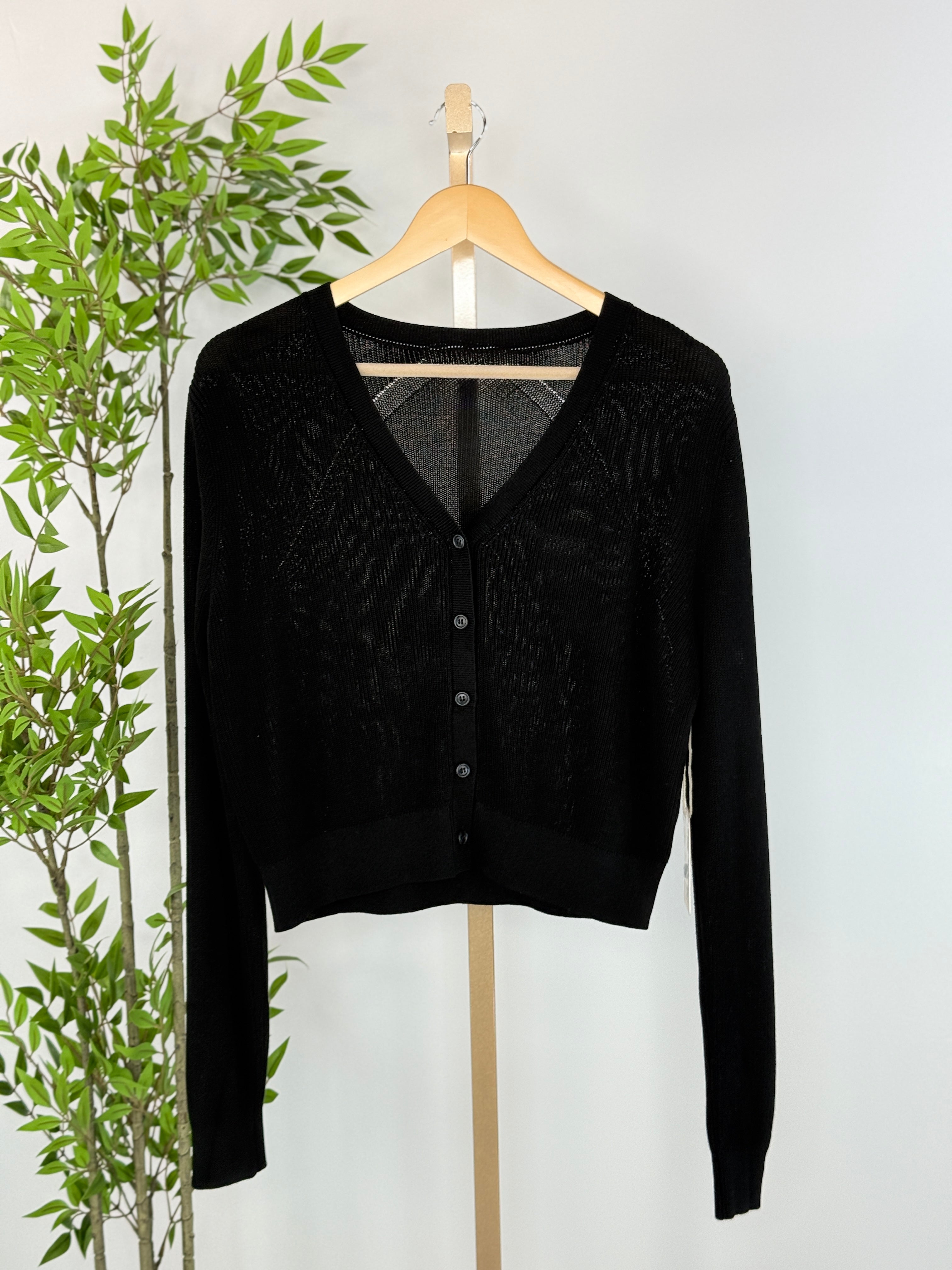 Simple, soft, and endlessly wearable, the Kerisma Misu Cardigan in Black is the definition of effortless layering. Designed in a lightweight ribbed knit, this cardigan features a flattering V-neckline, delicate button-front closure, and a crop silhouette that pairs beautifully with high-rise denim, skirts, or dresses. The smooth, breathable fabric makes it ideal for year-round wear—easy to throw on, easy to style, and always polished. Whether worn buttoned as a top or open as a layer, this piece is a true wardrobe staple for elevated everyday outfits.