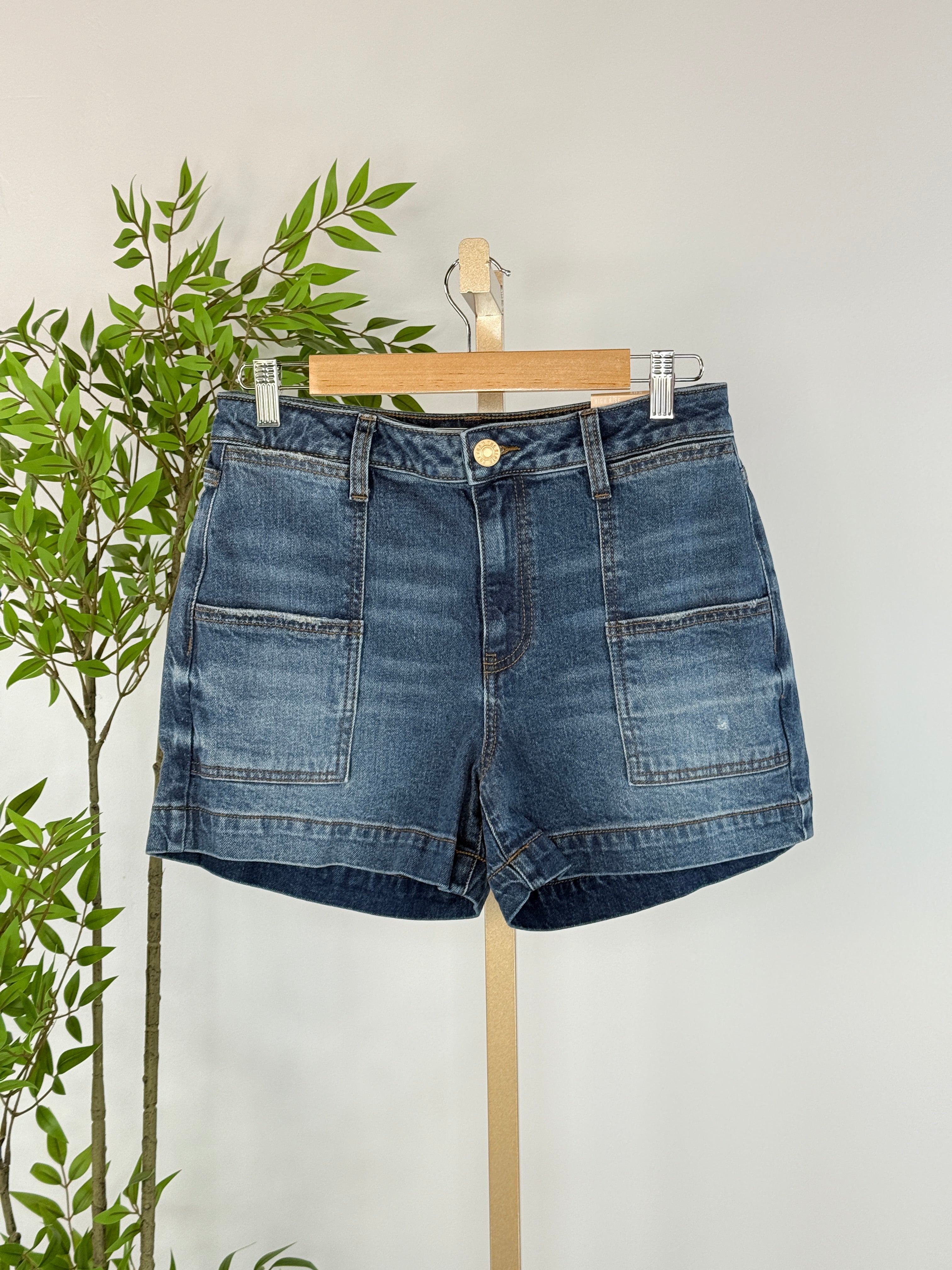 Crafted from low-stretch denim, these Kut form the Kloth Jane Shorts in True feature a flattering high waist and relaxed wide hem that works beautifully with everything from casual tees to your favorite tanks. Utilitarian patch pockets add practical style, while the intentionally distressed back pockets give them an effortlessly worn-in character. Perfect for creating that laid-back, put-together look you'll reach for again and again.
