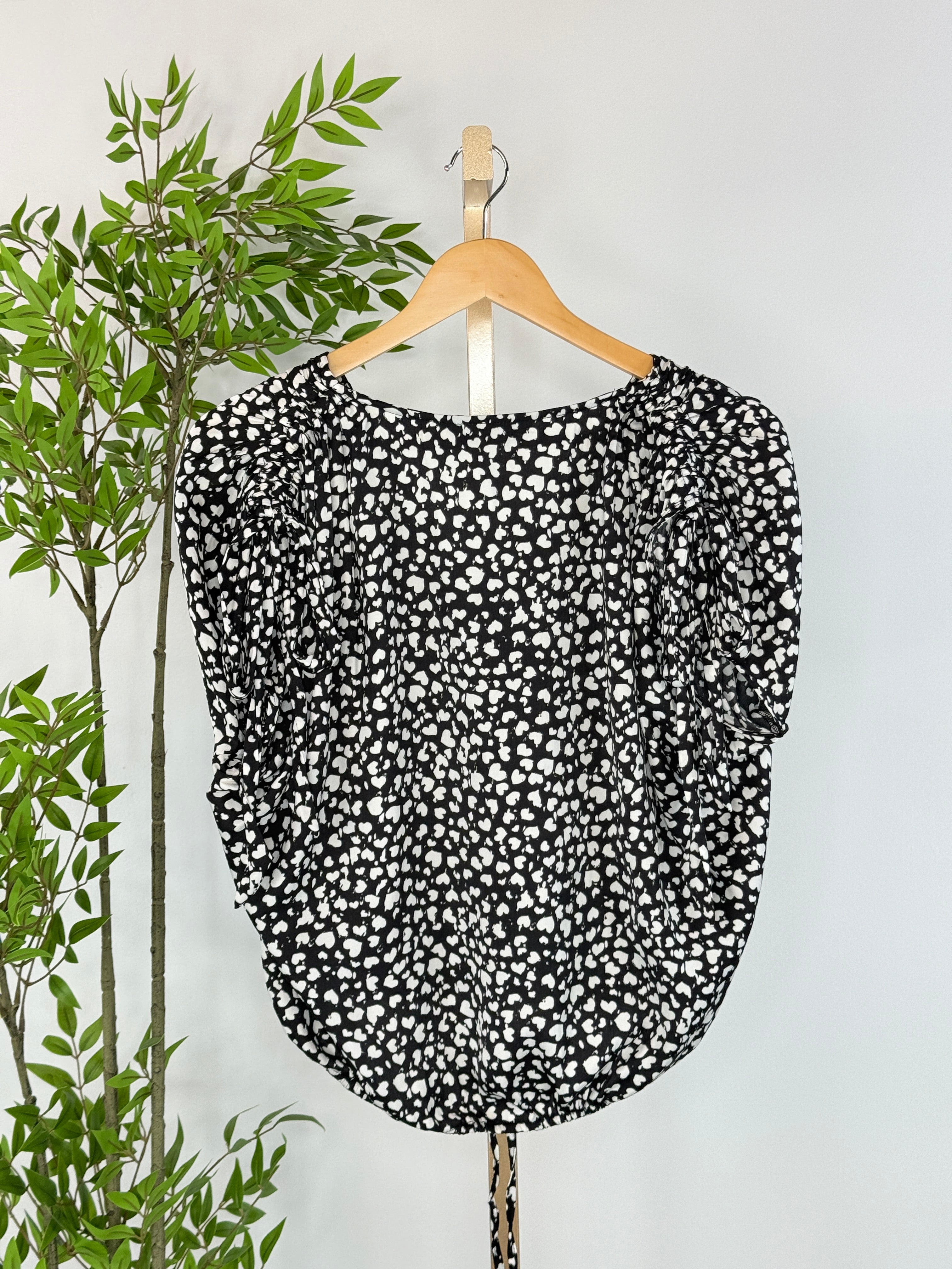 Liverpool Dolman Tie Top in Black and Cream Hearts