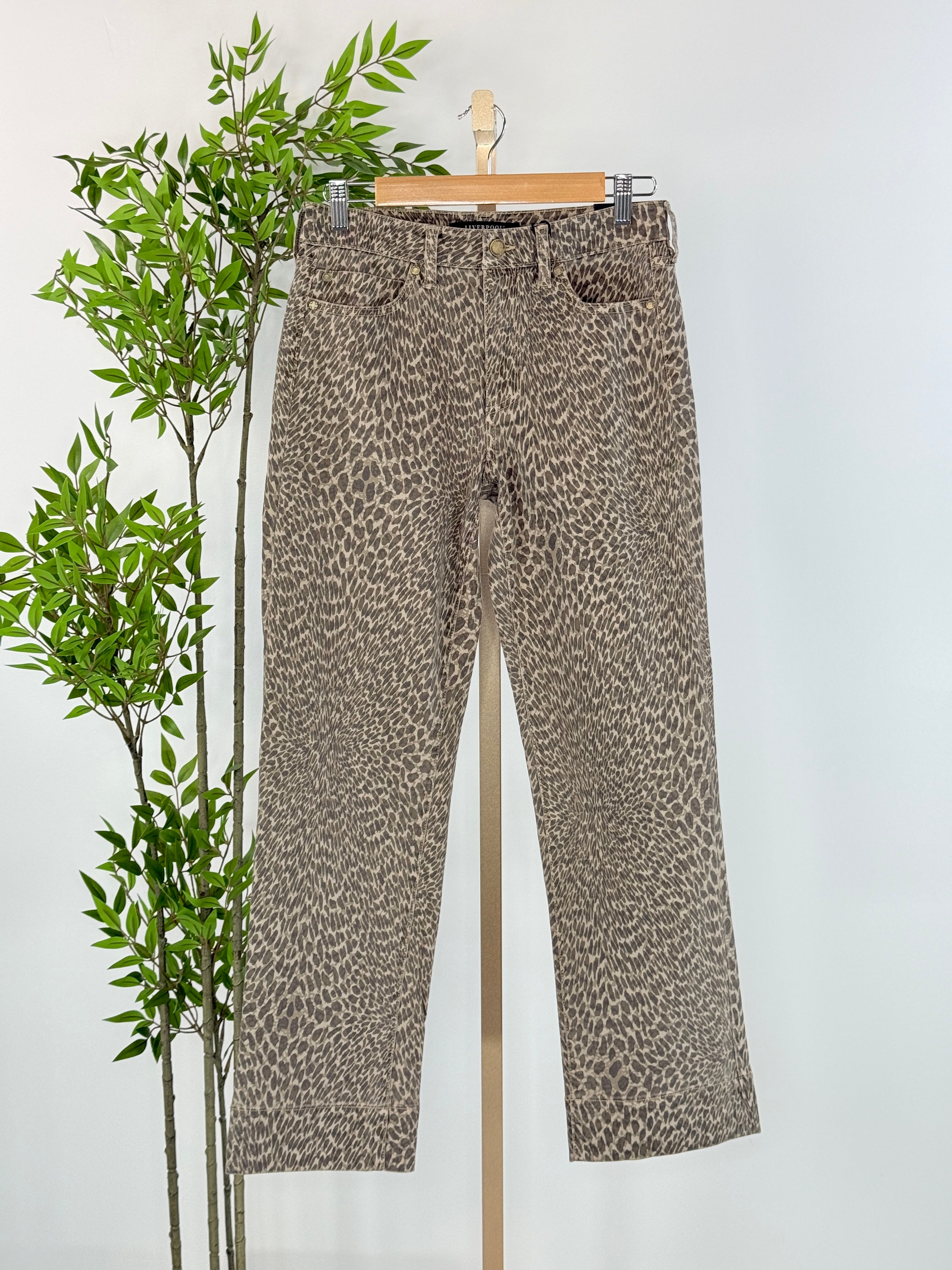 Liverpool Kennedy Straight Denim in Khaki Abstract Animal