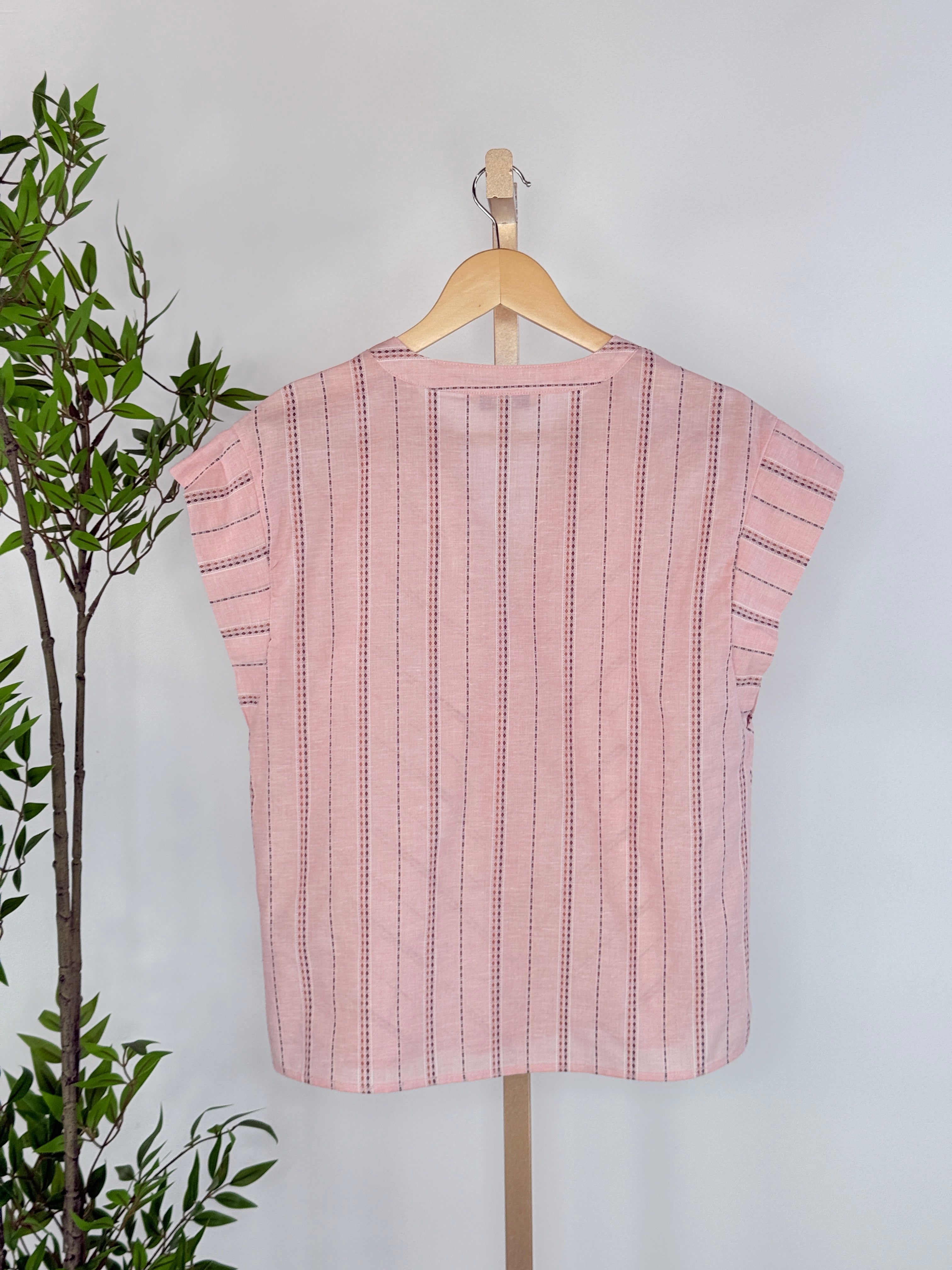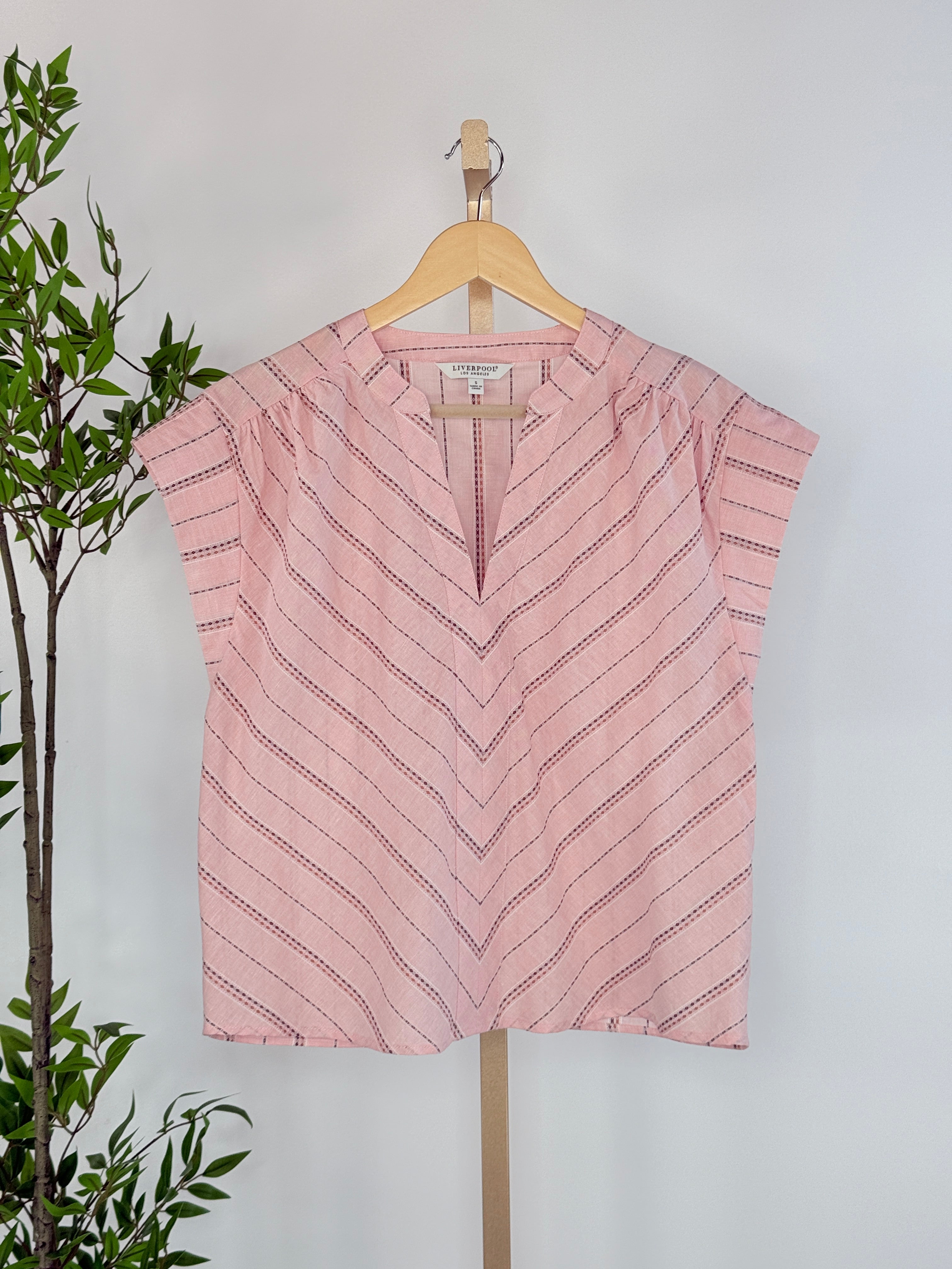 Soft, simple, and quietly special, the Liverpool Popover Top in Pink Multi is one of those easy pieces you’ll reach for again and again. Designed with a relaxed silhouette and subtle cap sleeves, this lightweight top is made for effortless everyday wear. The soft blush pink base is elevated with delicate vertical stripe detailing, adding just enough texture and interest while keeping the look timeless. Crafted from breathable, lightweight cotton and linen fabric, this top is perfect for warmer days or easy layering under knits and jackets as the seasons change. Dress it up with tailored trousers or keep it casual with denim, it’s a versatile staple you’ll love styling your own way.