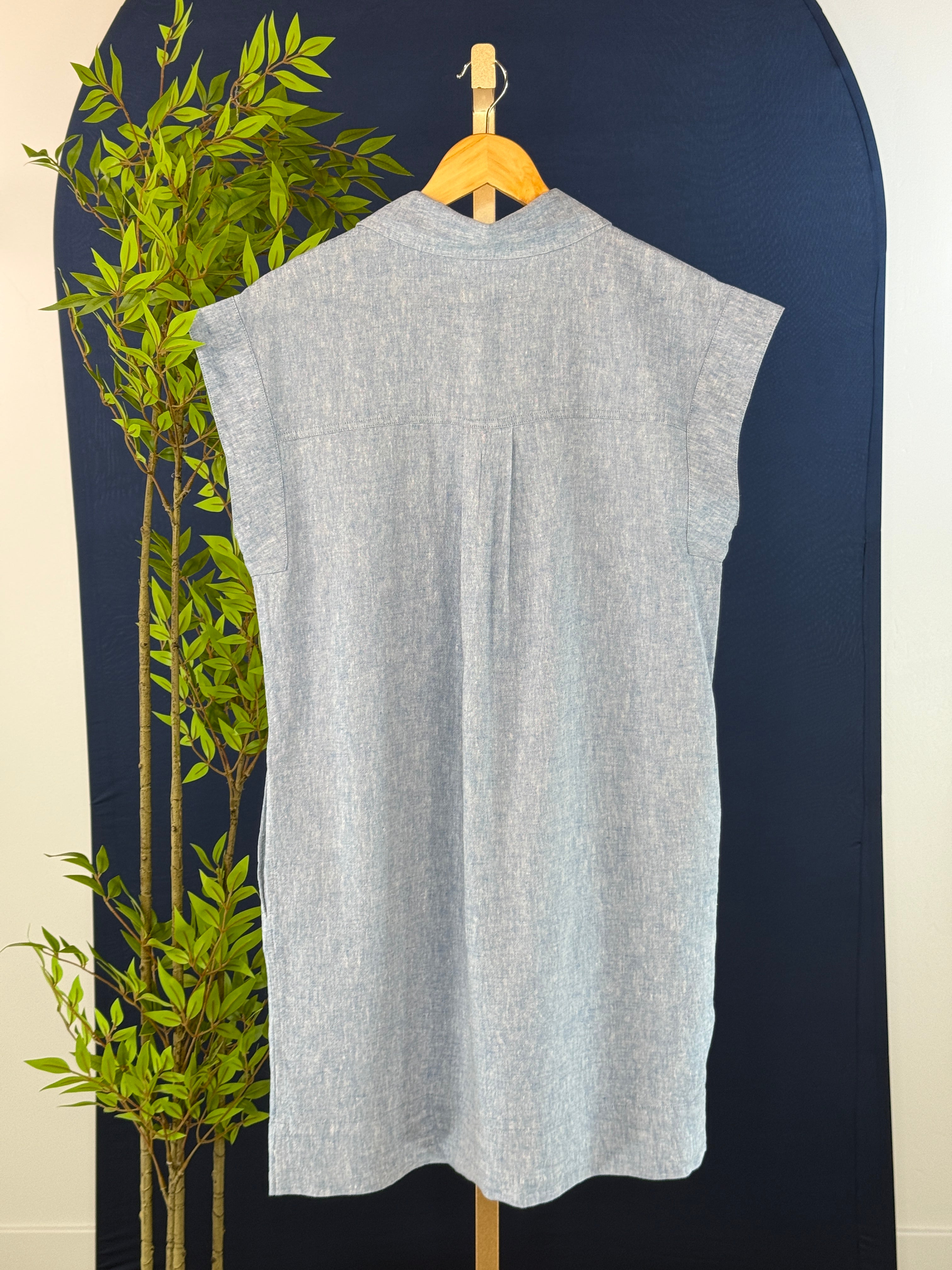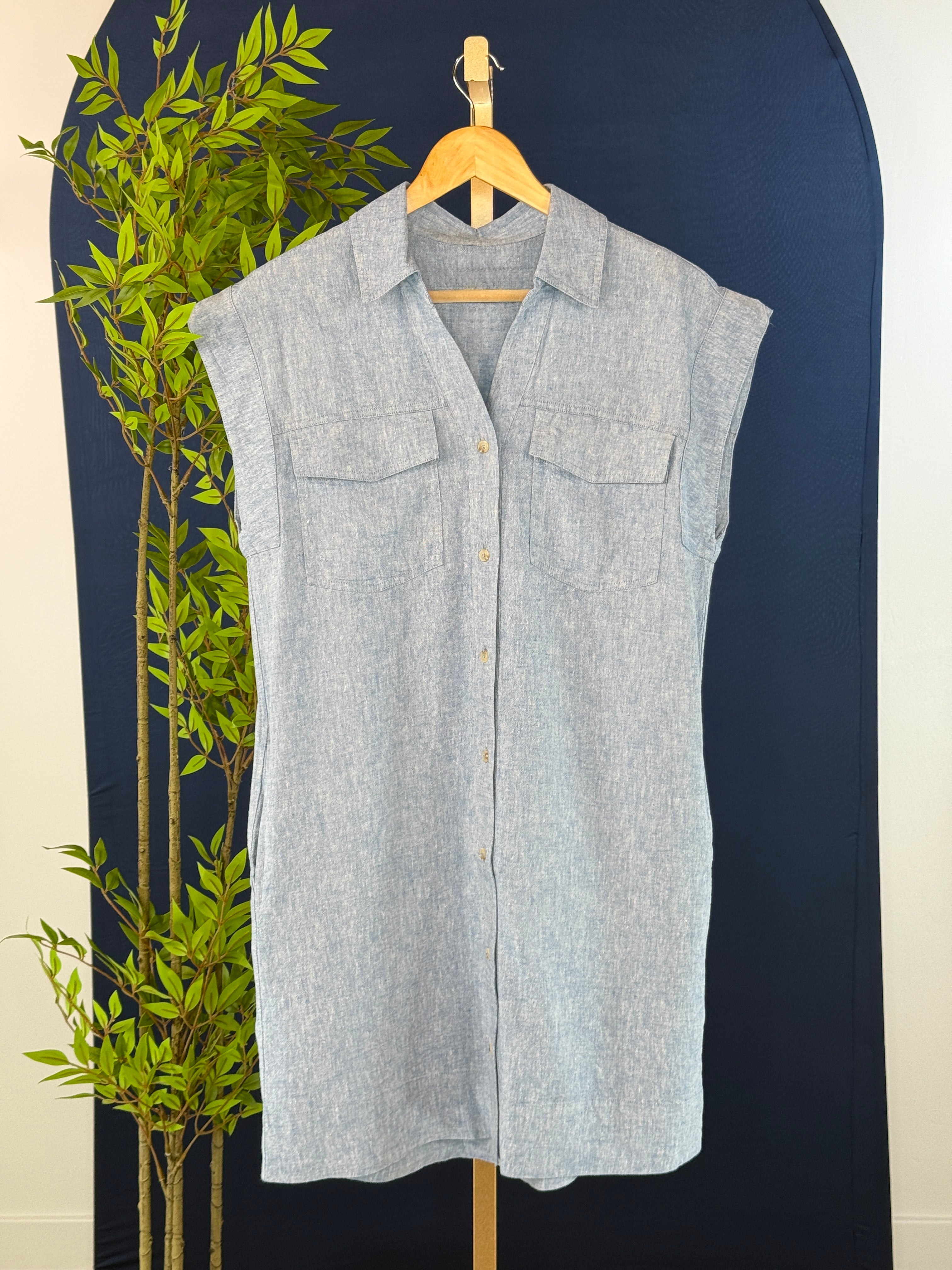 Easy, effortless, and made for everyday wear,the Thread and Supply Nori Dress in Heather Blue is your new go-to for laid-back style with a polished touch. Crafted from a lightweight linen blend fabric, this sleeveless dress features a classic collar, button-front design, side pockets and relaxed silhouette that flatters without feeling fussy. Front chest pockets add a casual, utility-inspired detail, while the soft structure makes it perfect for warm days on the go. Wear it solo with sandals for an easy outfit or layer it with a jacket as the seasons shift—this versatile piece is designed to keep up with your day.