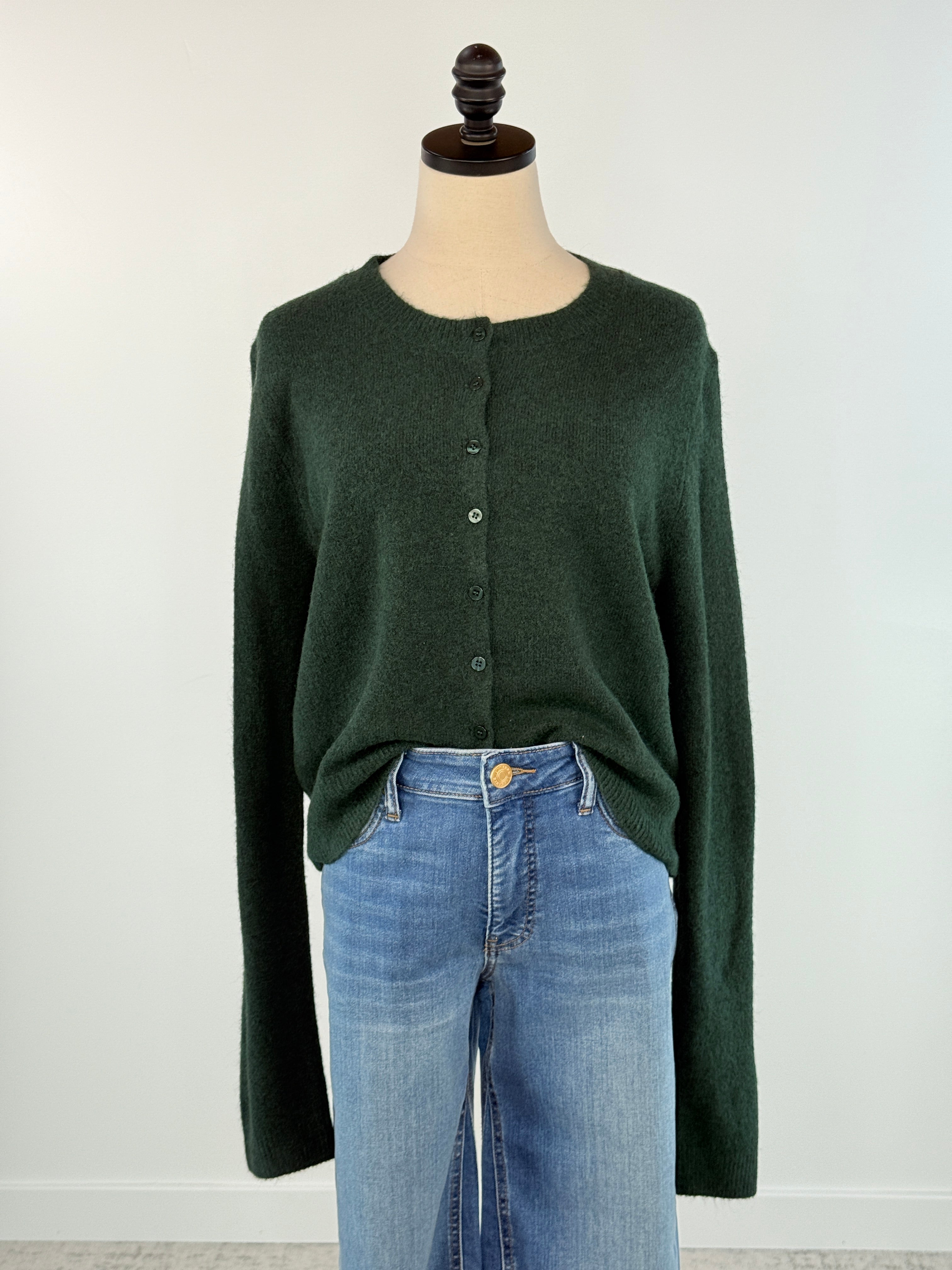 Stay comfortable and stylish with the Z Supply Medina Cardigan Sweater in Garland Green. This cozy crewneck cardigan features soft sweater yarns and a convenient button-up front, making it perfect for layering. Whether you wear it over a tank or on its own, this cardigan is your go-to for any casual day.